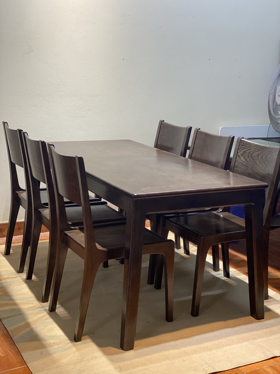 Bộ bàn ăn 6 ghế gỗ sồi lau màu óc chó hiện đại BA GS 09