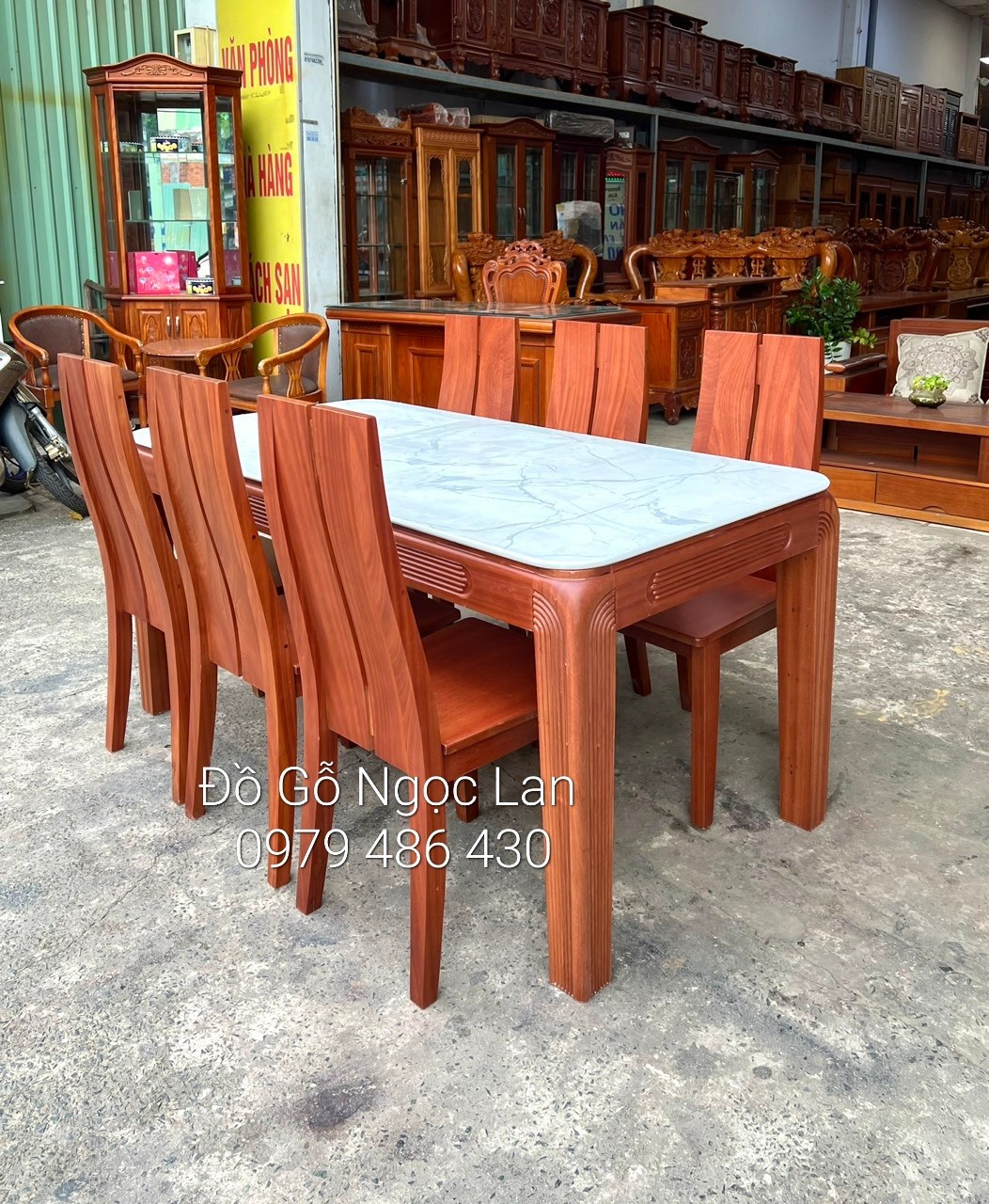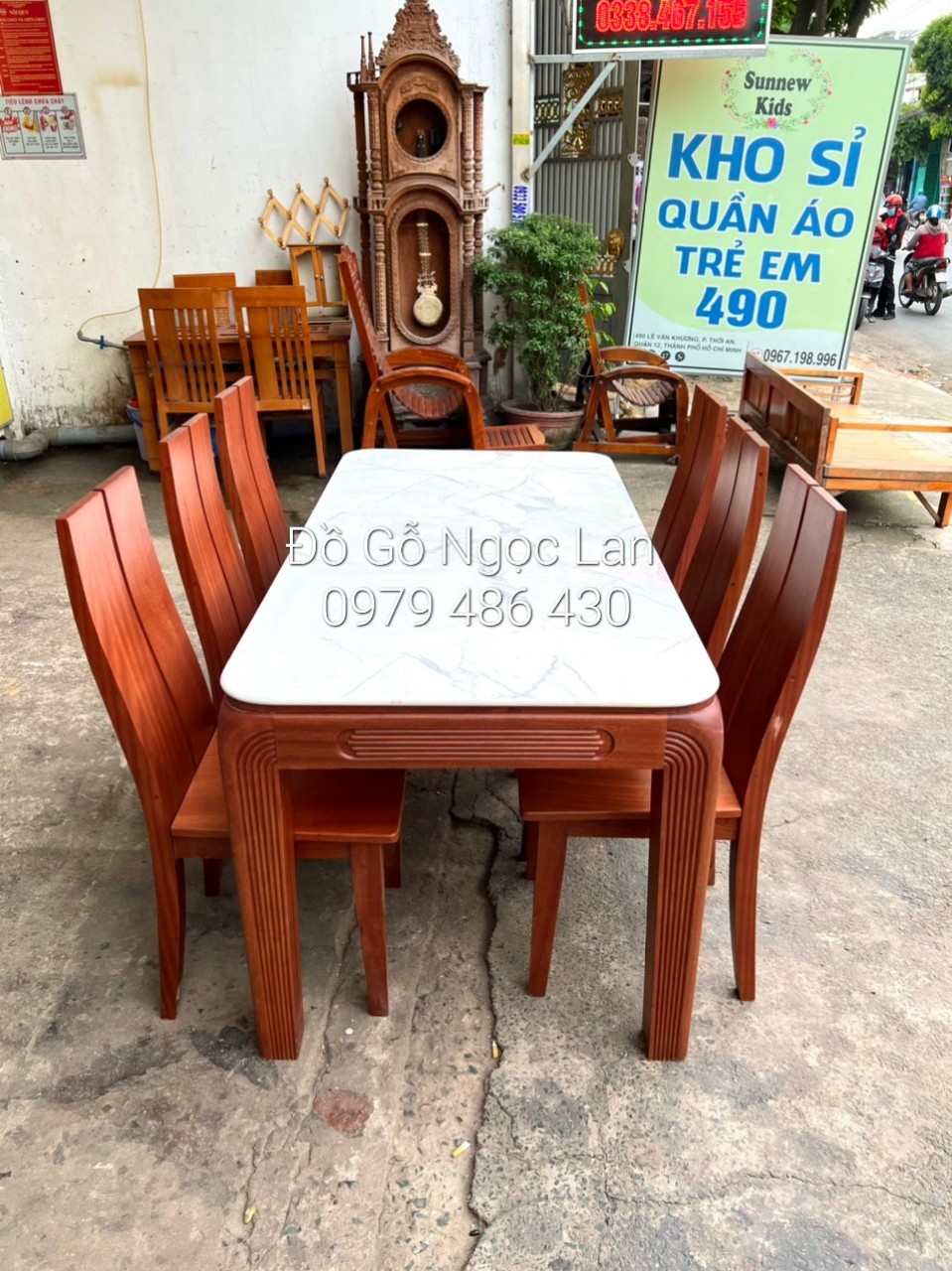 bộ bàn ăn 6 ghế gỗ sồi mặt đá , hàng cao cấp BA GS 07