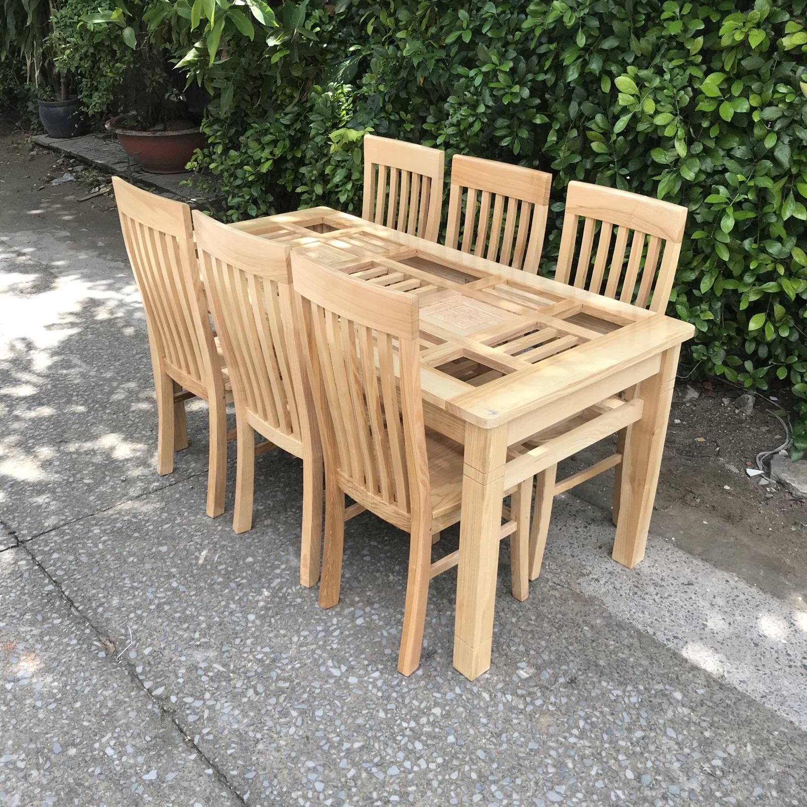 Bộ bàn ăn 6 ghế gỗ Sồi Nga - dàn che đẹp