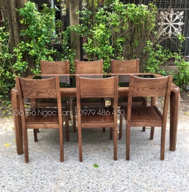 Bàn Ăn 6 Ghế Gỗ Sồi Nga Lau Màu Óc Chó Chân Choãi Sang Trọng - Hiện Đại