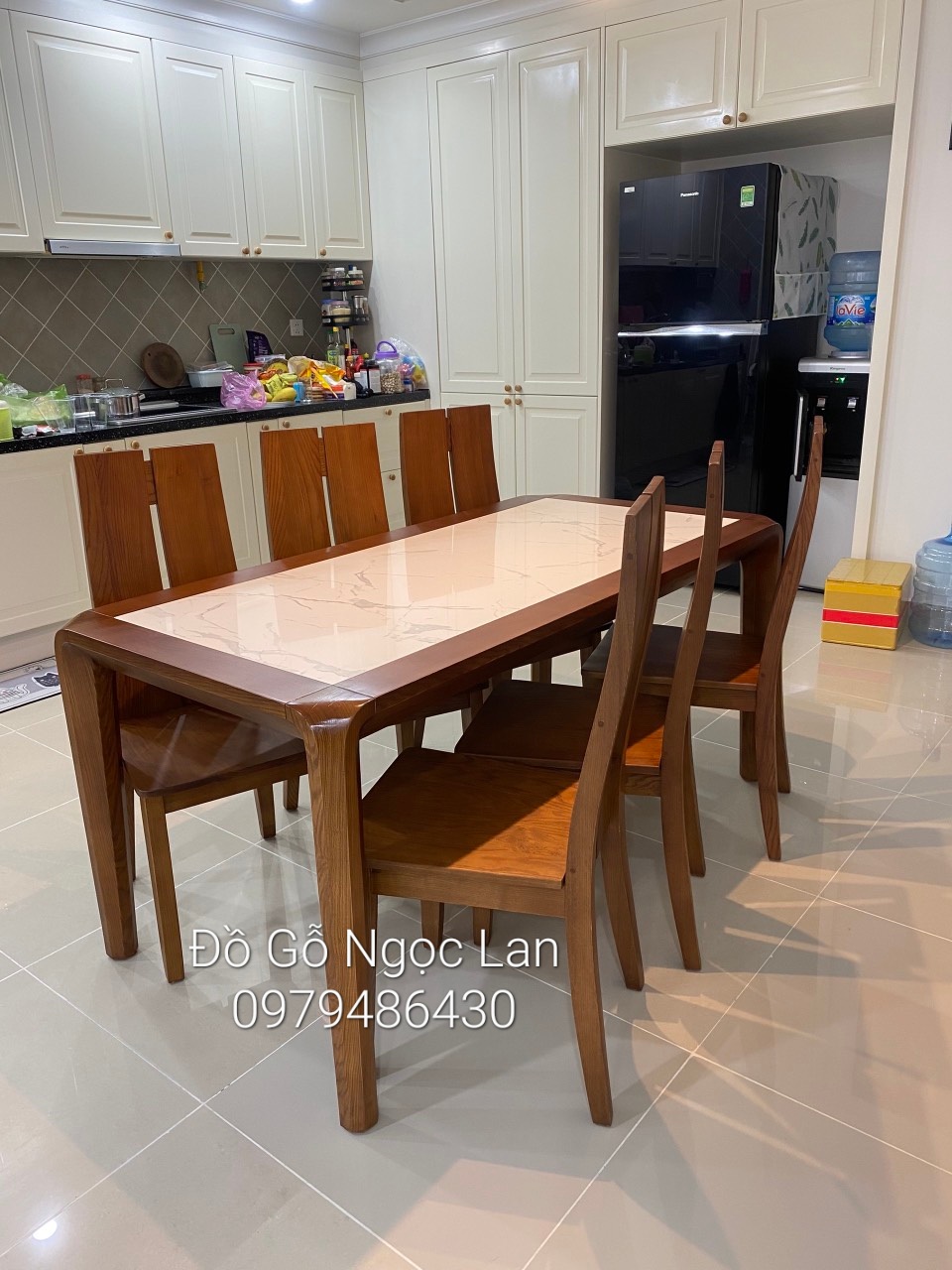 Bộ bàn ăn 6 ghế mặt đá gỗ sồi màu BA GS 08