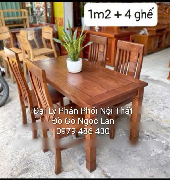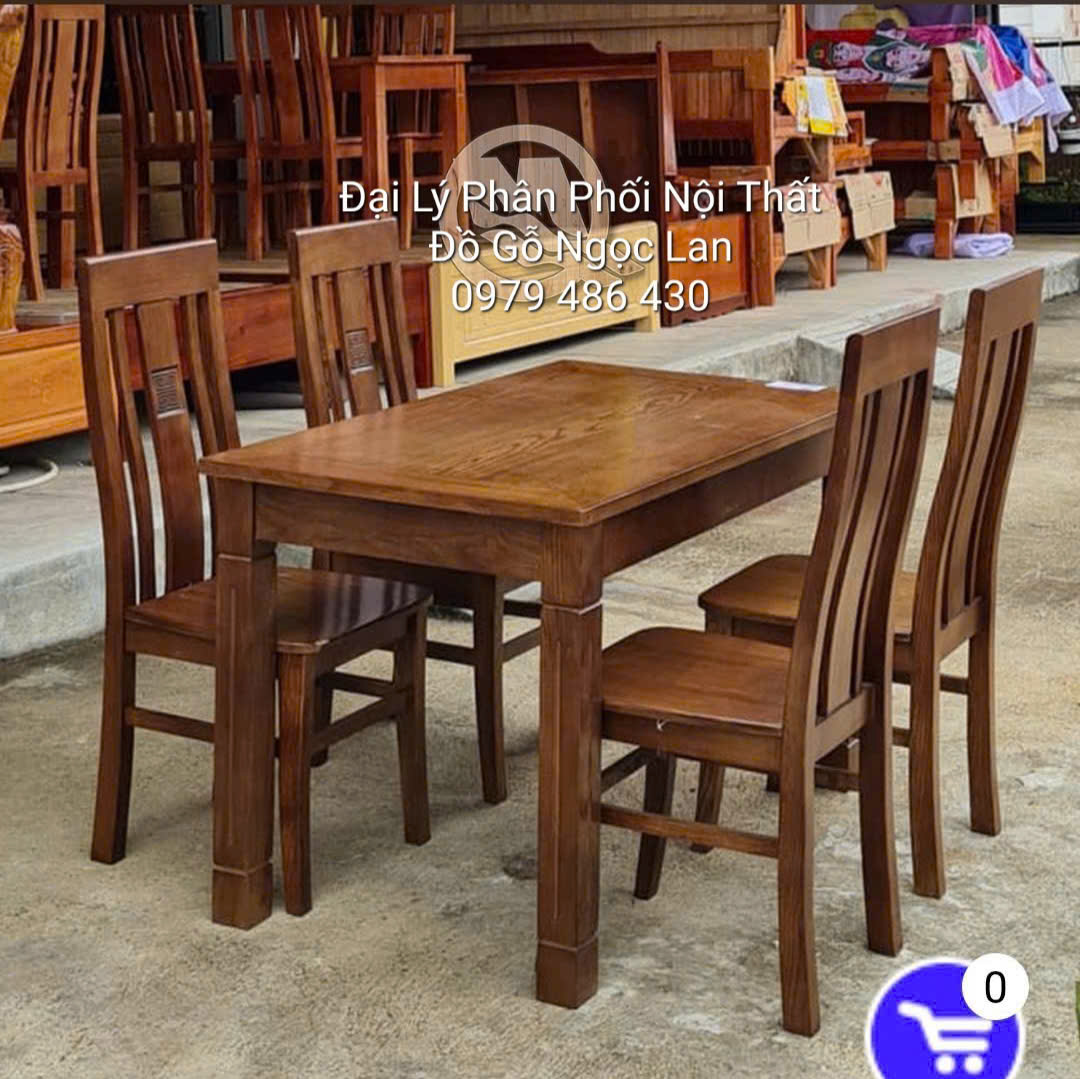 Bộ Bàn Ăn Gỗ Sồi 4 Ghế Lau Màu Óc Chó 1m2 - Hiện Đại