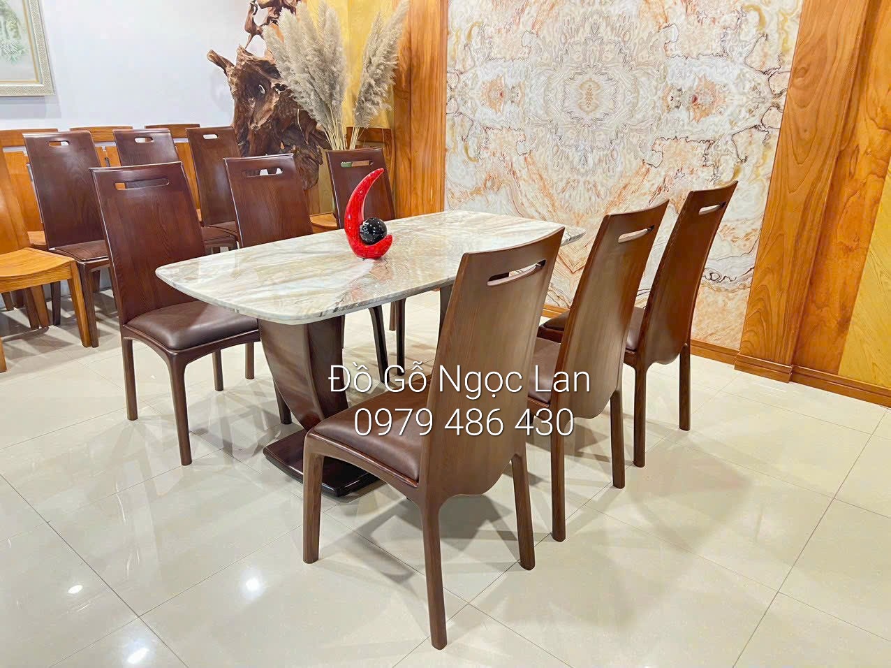 Bộ bàn ăn 6 ghế gỗ sồi nga lau mà óc chó mặt đá đẹp - sang trọng