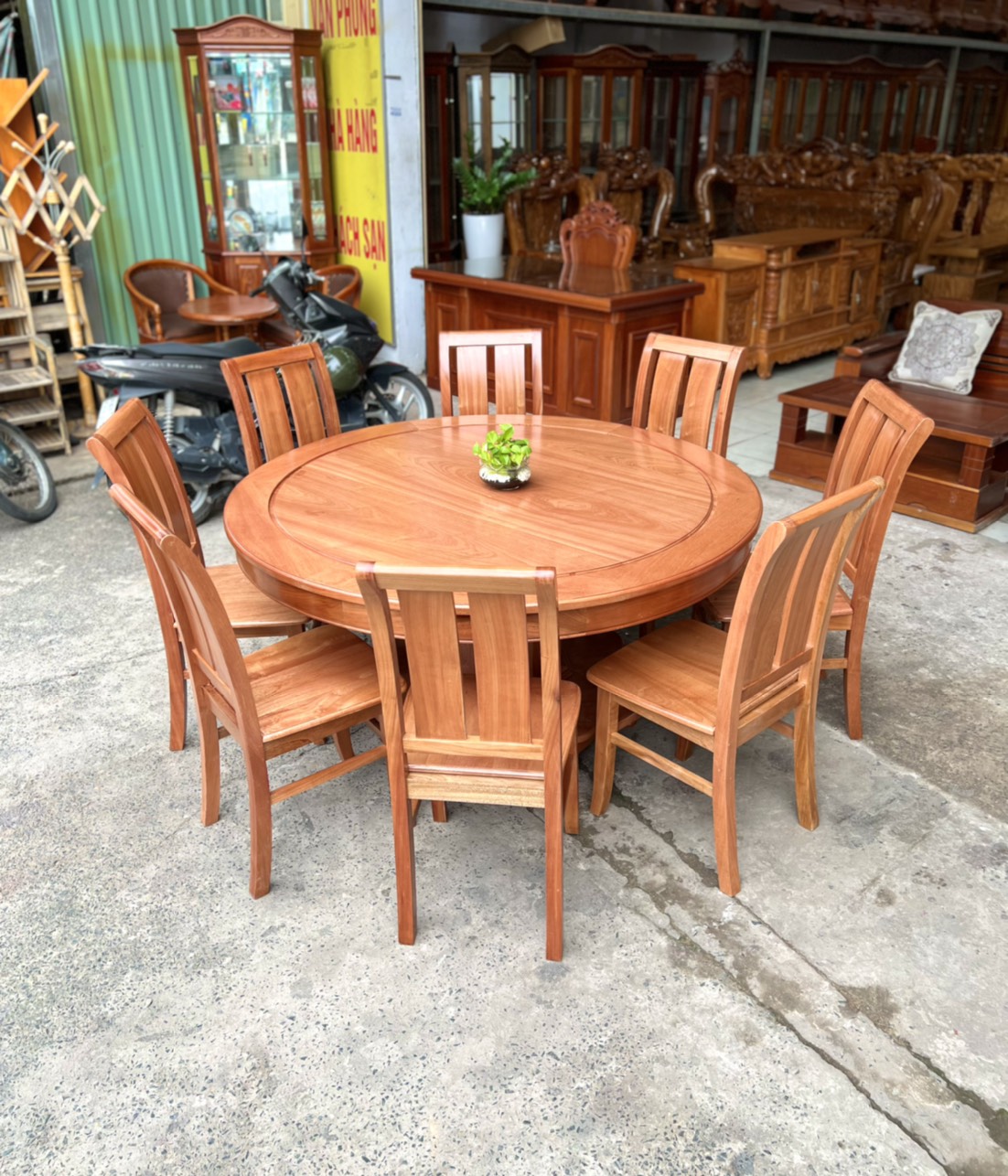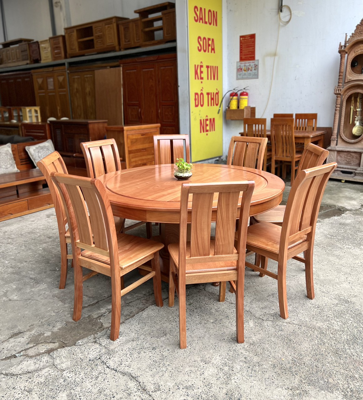 Bộ bàn ăn gỗ xoan đào tròn mâm xoay 8 ghế cao cấp
