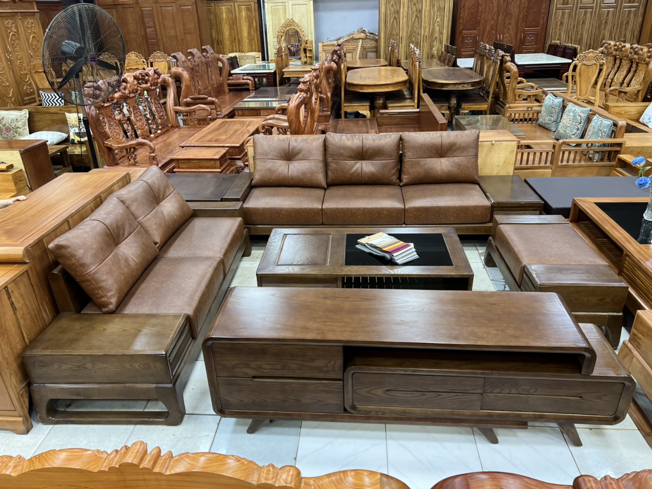 Bộ Bàn Ghế Phòng Khách Gỗ Sồi Nga Màu Óc Chó 2 Văng Chân Thuyền Hiện Đại