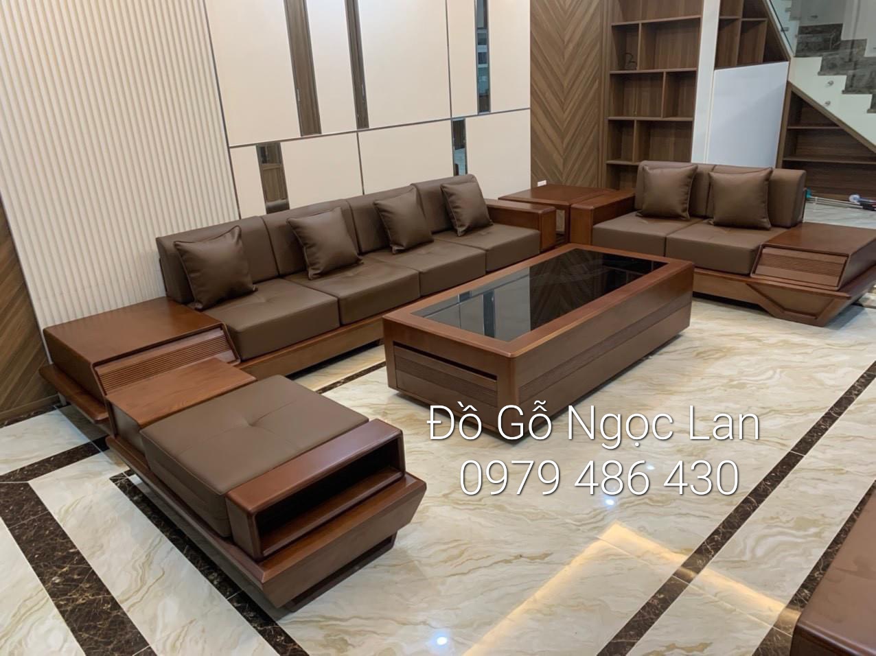 Bộ Bàn Ghế Phòng Khách Gỗ Sồi Nga Màu Óc Chó 2 Văng Chân Thuyền Hiện Đại
