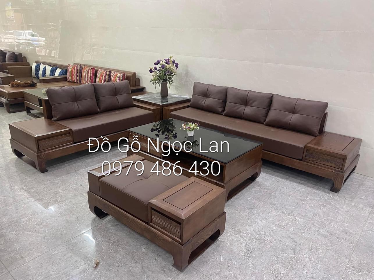 Bộ bàn ghế sofa gỗ sồi nga 2 văng hiện đại