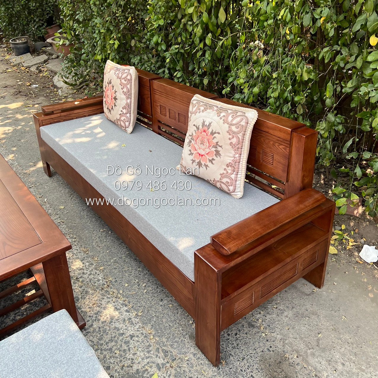 Ghế sofa gỗ sồi nga lau màu óc chó 4 chi tiết