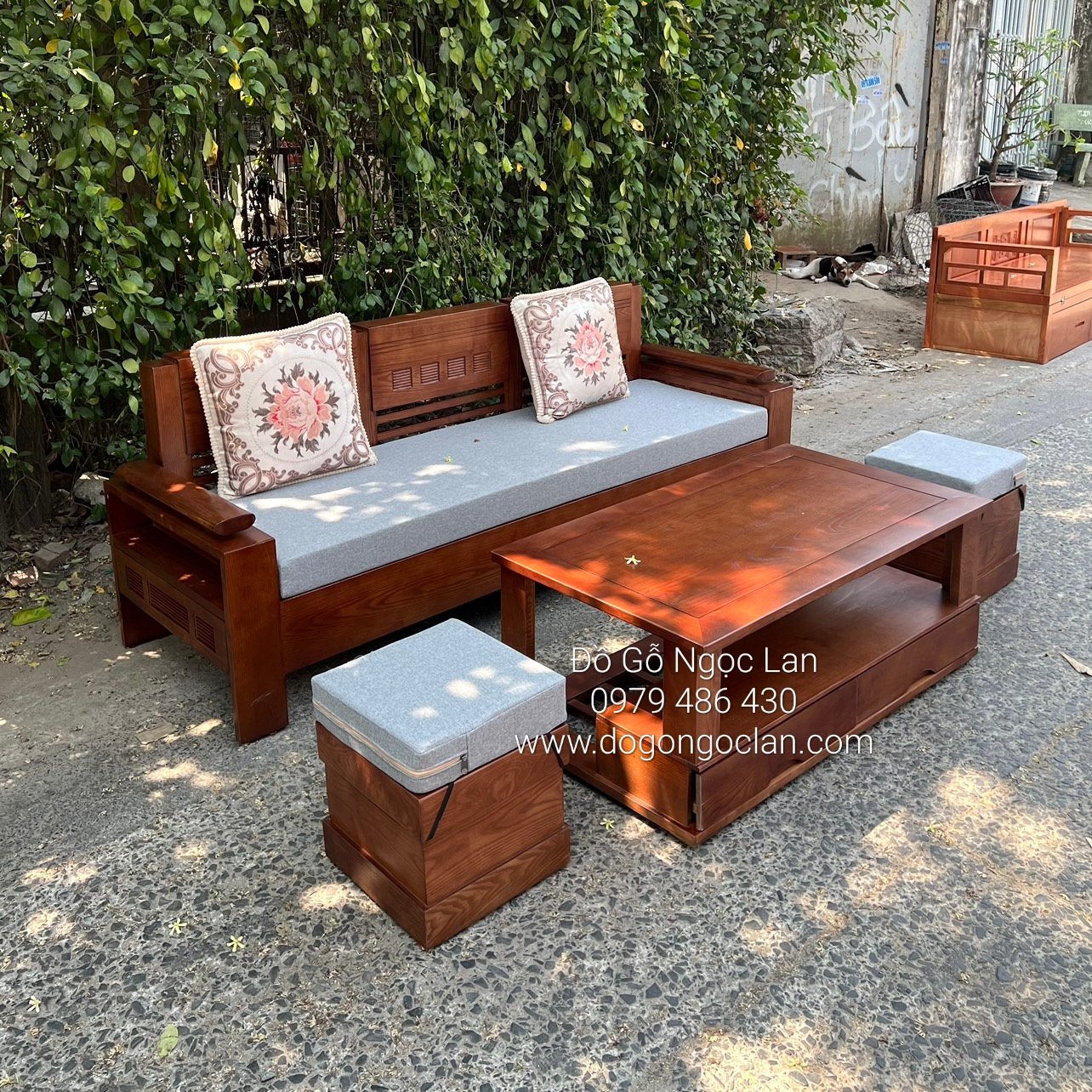 Sofa gỗ sồi có thể bỏ nệm ra sử dụng bình thường 2 kiểu