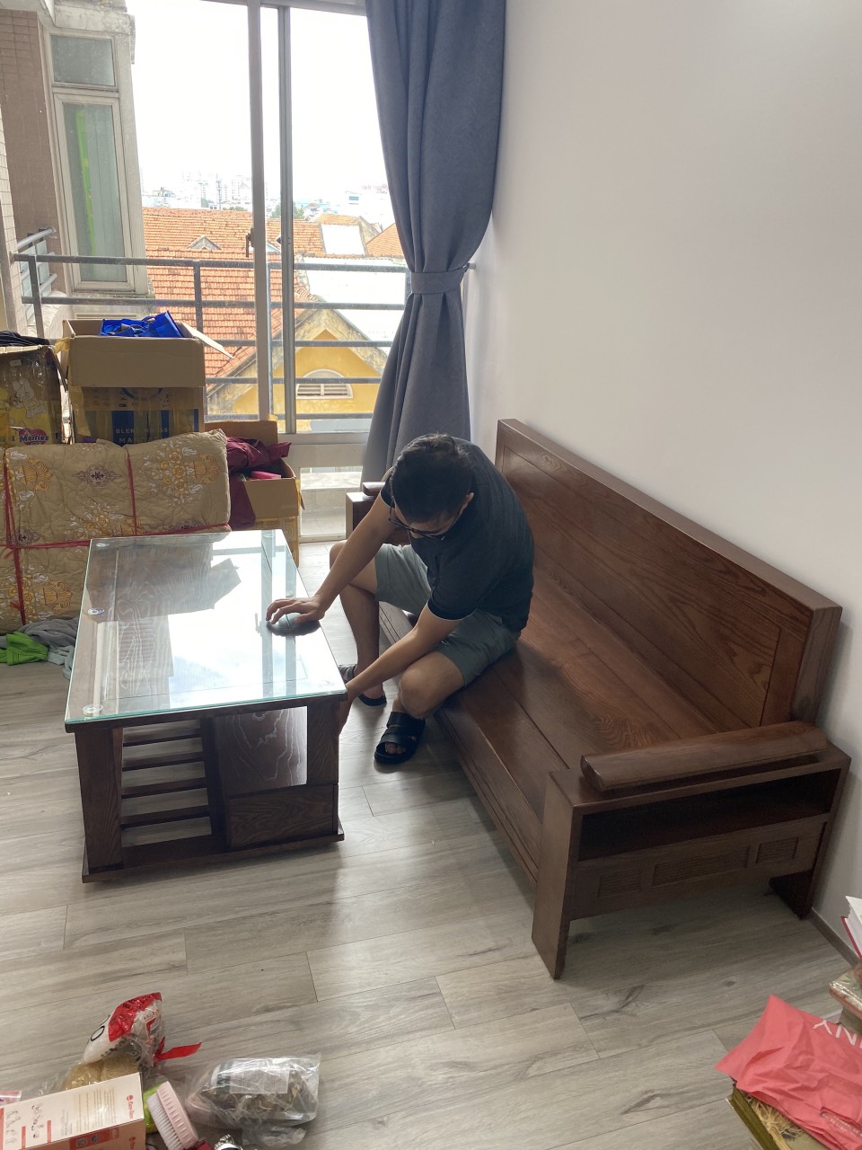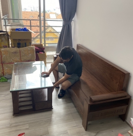 Bộ bàn ghế sofa gỗ sồi nga màu óc chó 2m x 1m8 - tựa liền