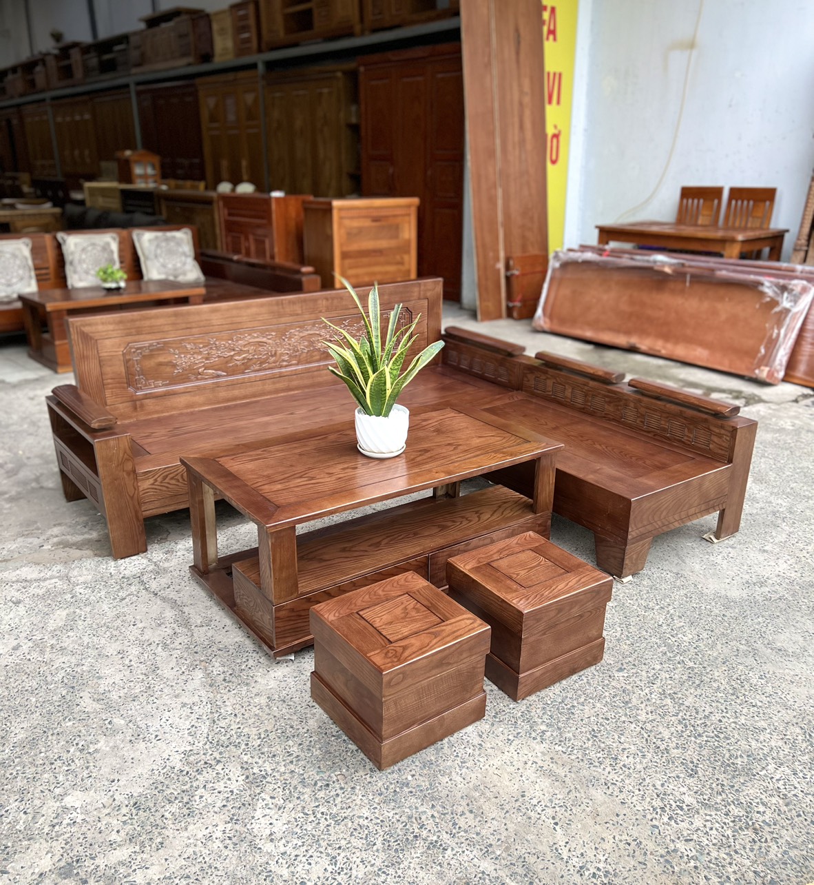 Bộ sofa góc L gỗ sồi nga màu óc chó