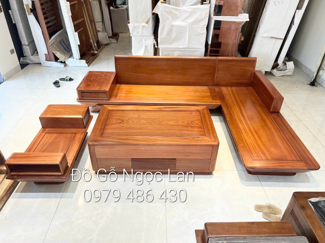 Salon gỗ tự nhiên - sofa góc L gỗ xoan đào - vẻ đẹp tinh tế cho phòng khách nhà bạn