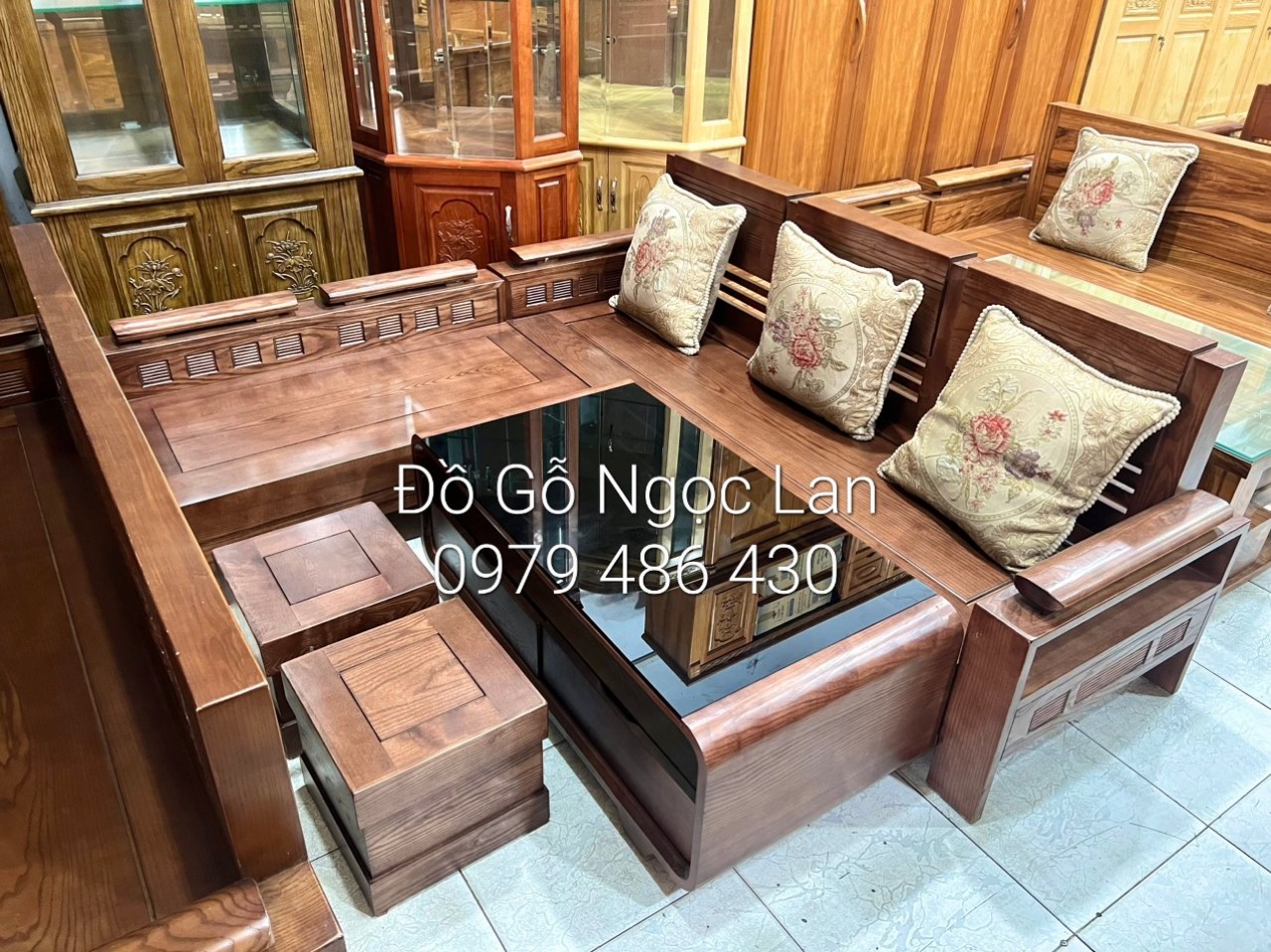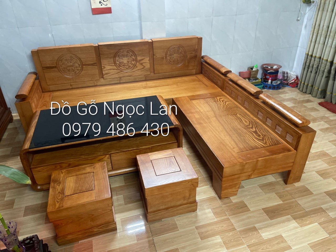 Bộ bàn ghế sofa góc L màu óc chó gỗ sồi nga 2m x1m8