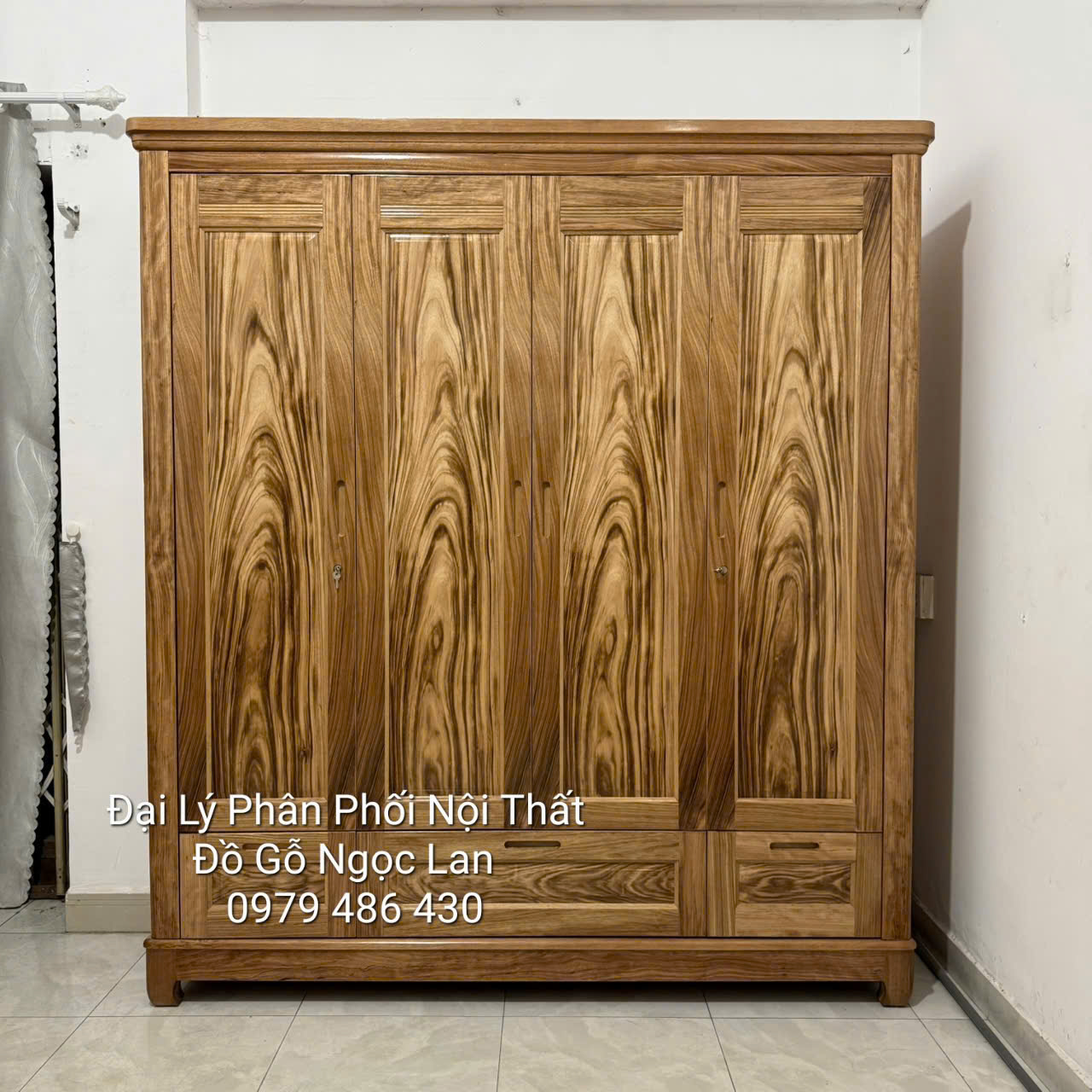 * 1 tủ áo gỗ hương xám 4 cánh dài 1m94