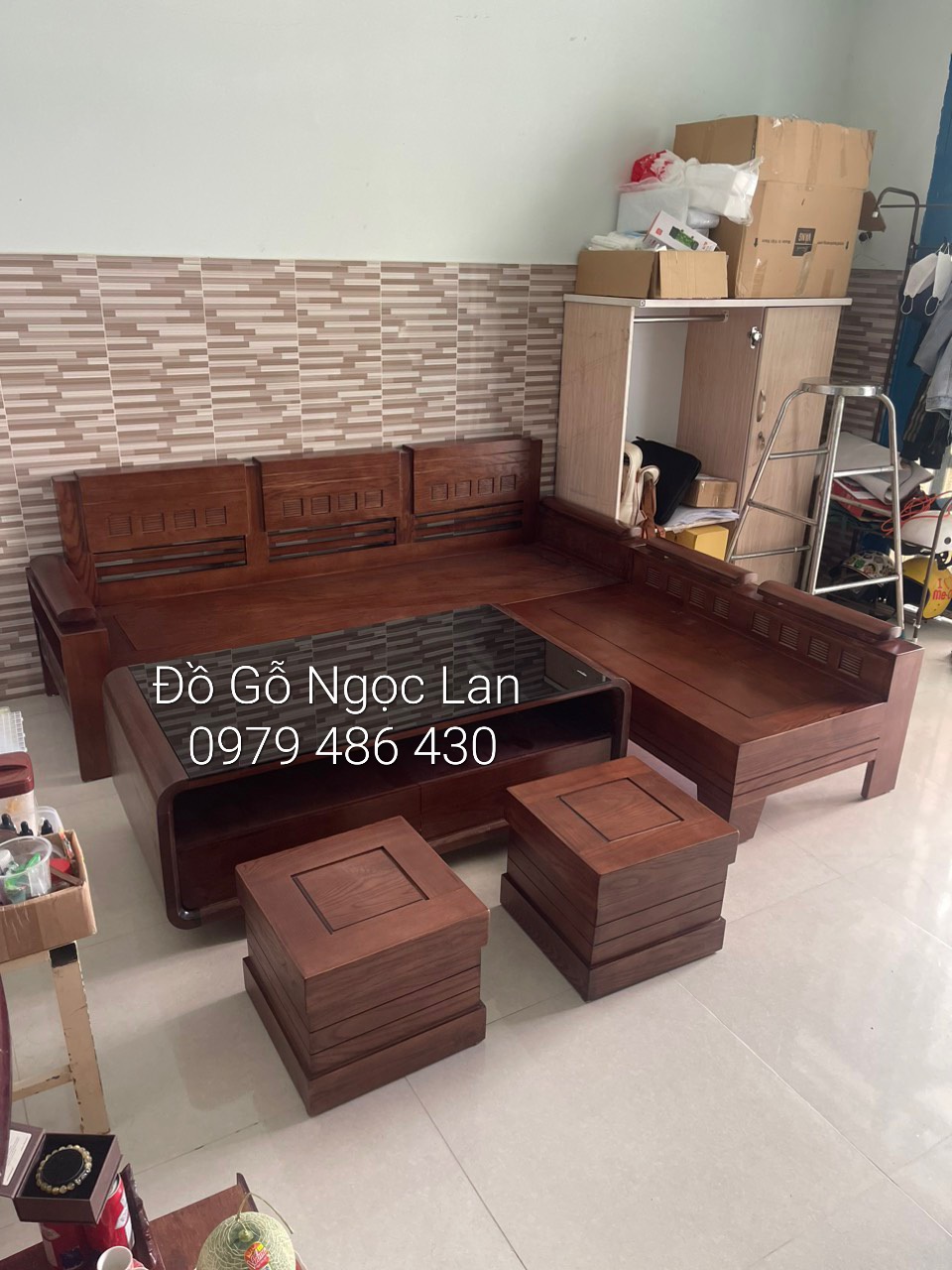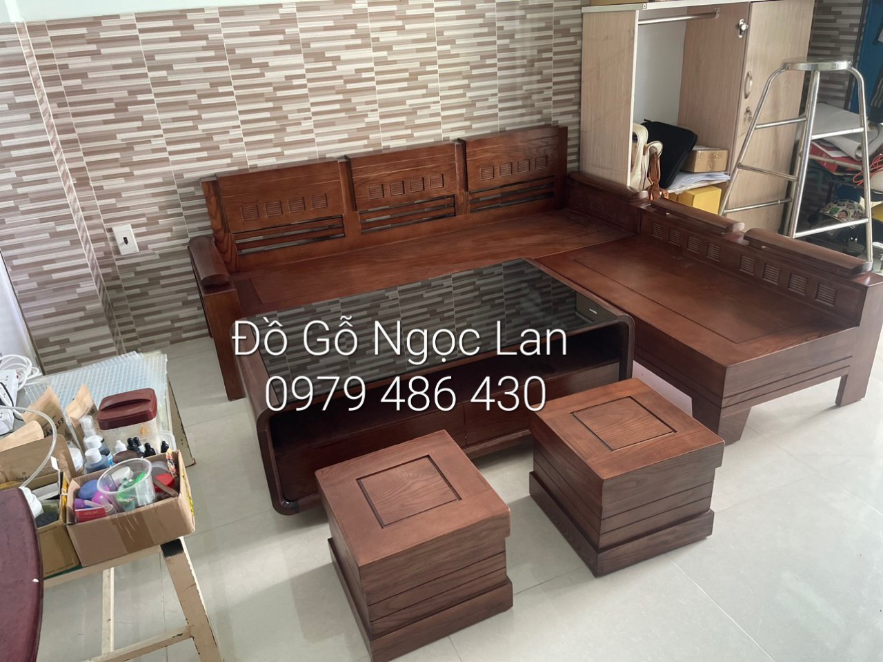 Bộ ghế sofa gỗ sồi nga lau màu óc chó 2m x 1m8 - tay trứng