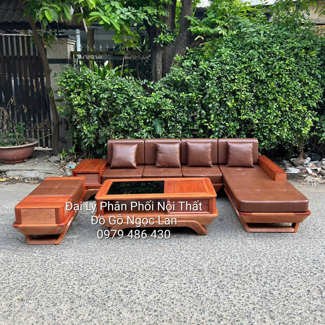 Bộ sofa góc L gỗ xoan đào chân thuyền
