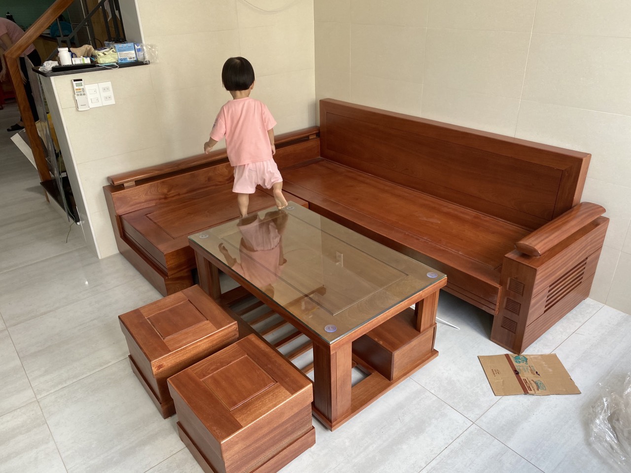 Bộ ghế sofa gỗ xoan đào góc L 2m1 x 1m6 - lưng liền
