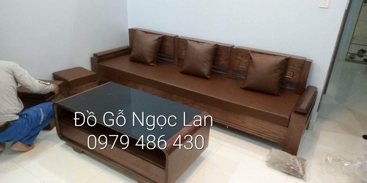Bộ Bàn Ghế Phòng Khách Gỗ Sồi Nga Màu Óc Chó 2 Văng Chân Thuyền Hiện Đại