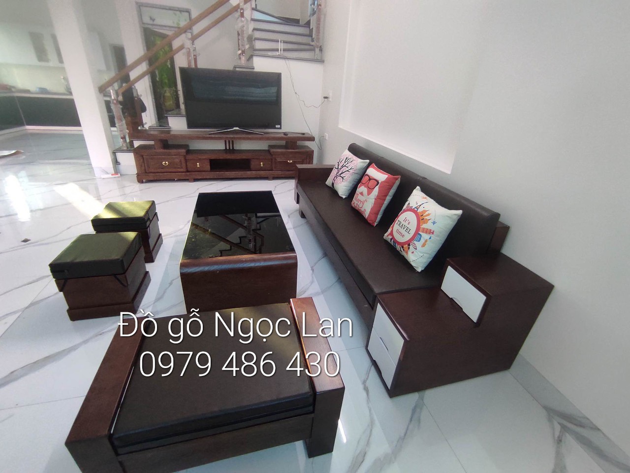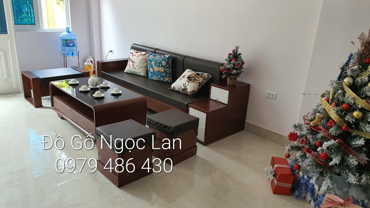 Bộ ghế sofa văng ngăn kéo 2m3 kèm nệm - lau màu óc chó