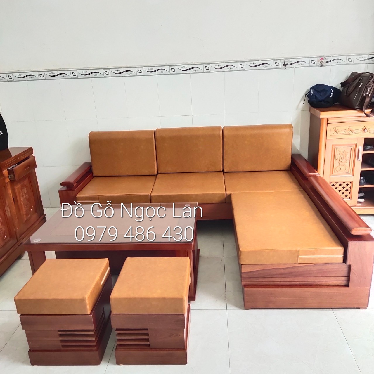 Bộ sofa gỗ gõ đỏ 2m1 x 1m65 - tay trứng hiện đại