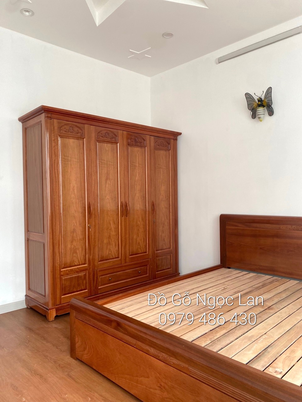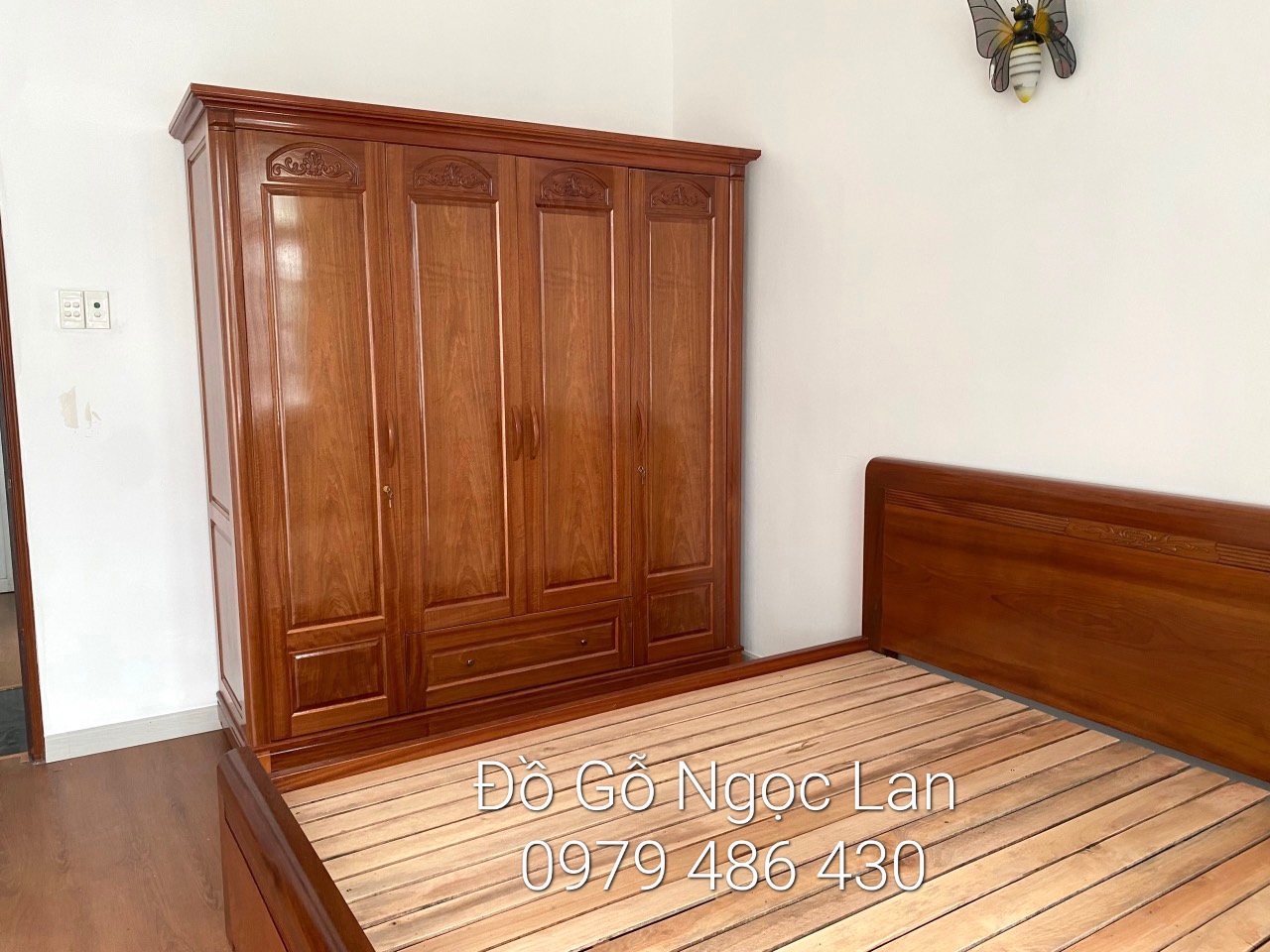 - Tủ quần áo gỗ xoan đào 4 cánh mẫu đai hoa