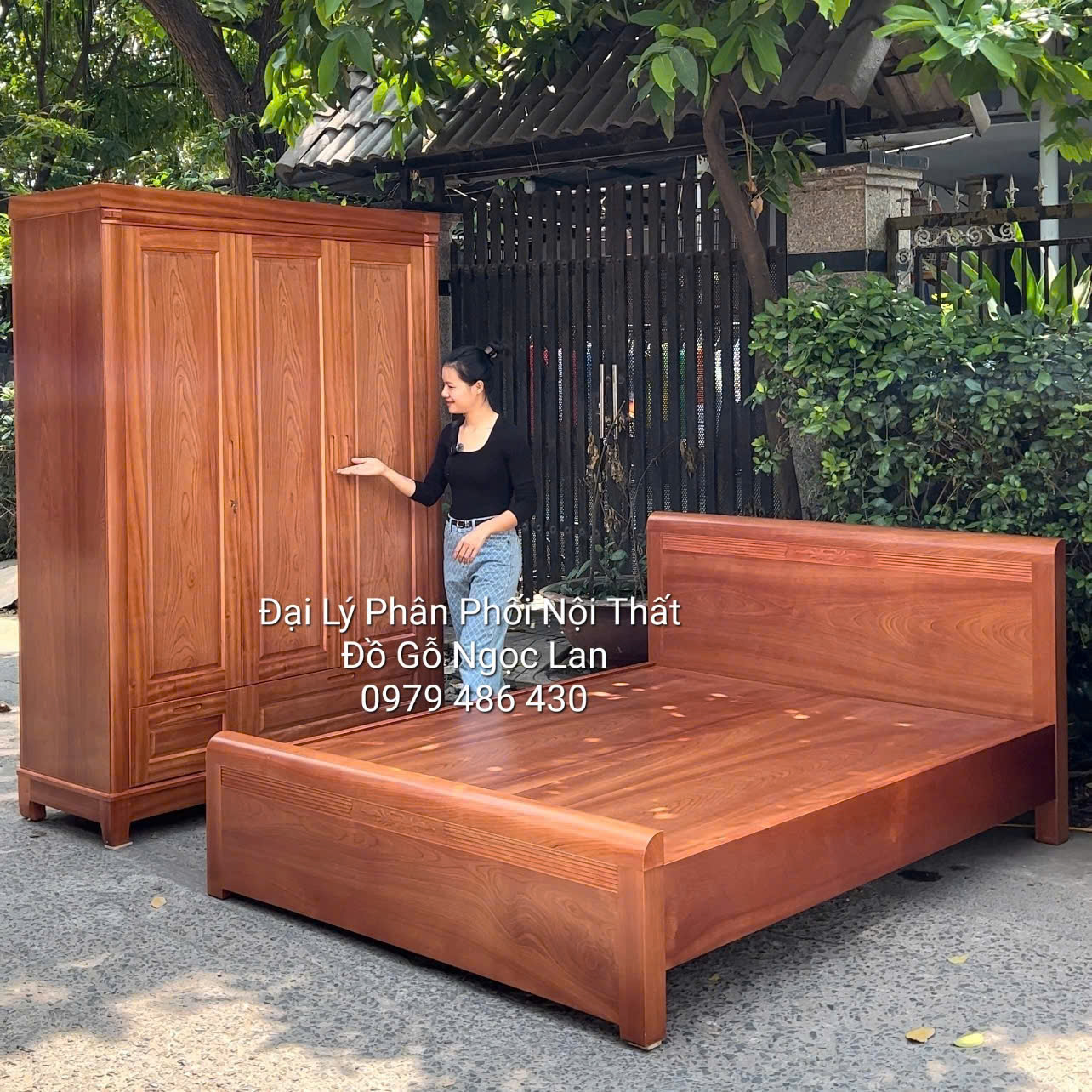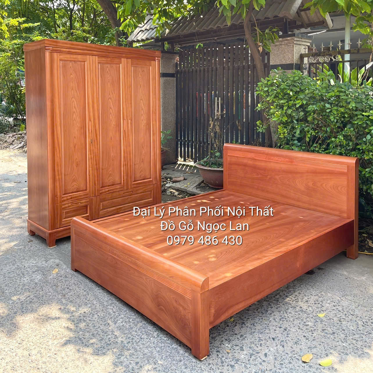 Combo gỗ xoan đào gồm 1 tủ áo 3 cánh, 1 giường 1m6x2m