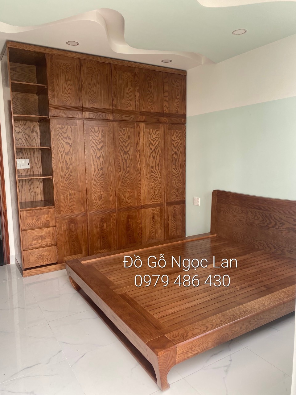 Combo phòng ngủ gỗ sồi lau màu óc chó - mẫu cao cấp