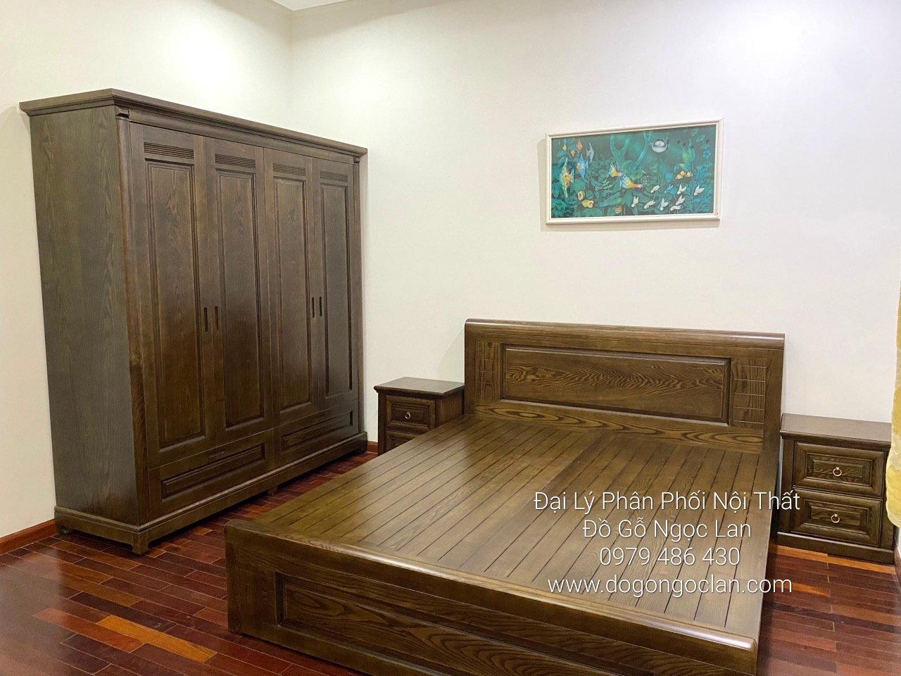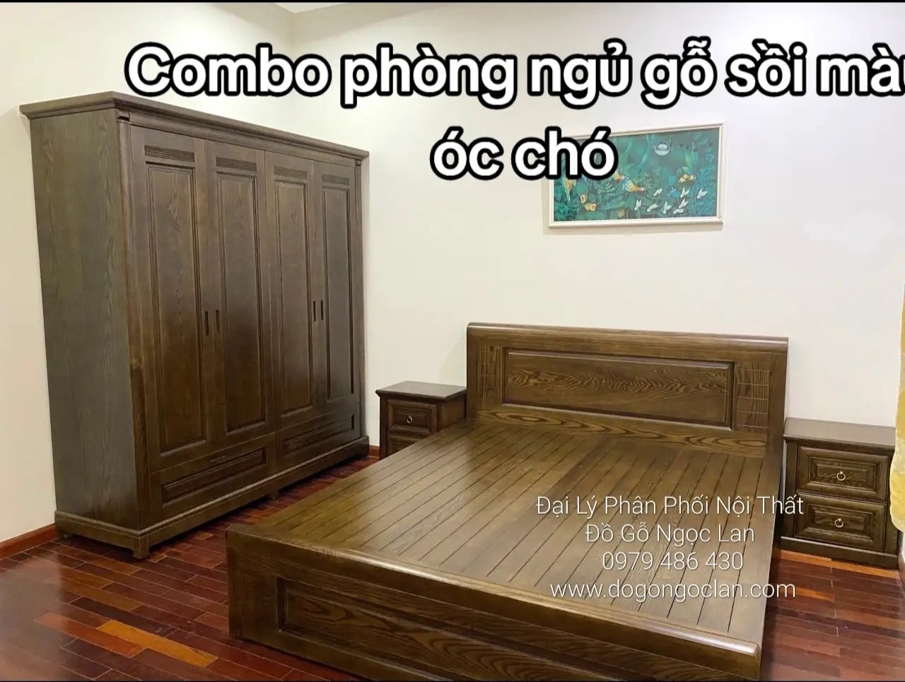 Bộ combo phòng ngủ gỗ sồi nga lau màu óc chó thiết kế tinh tế và sang trọng