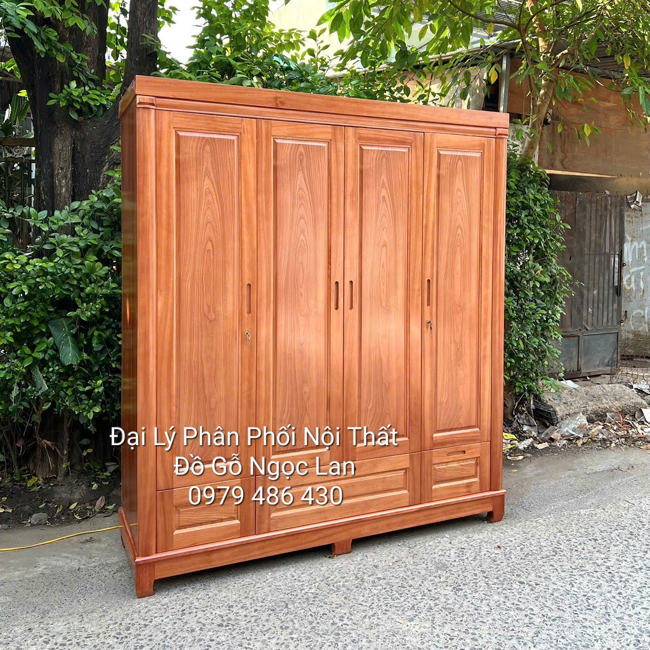 - Tủ quần áo gỗ xoan đào 4 cánh 1m9