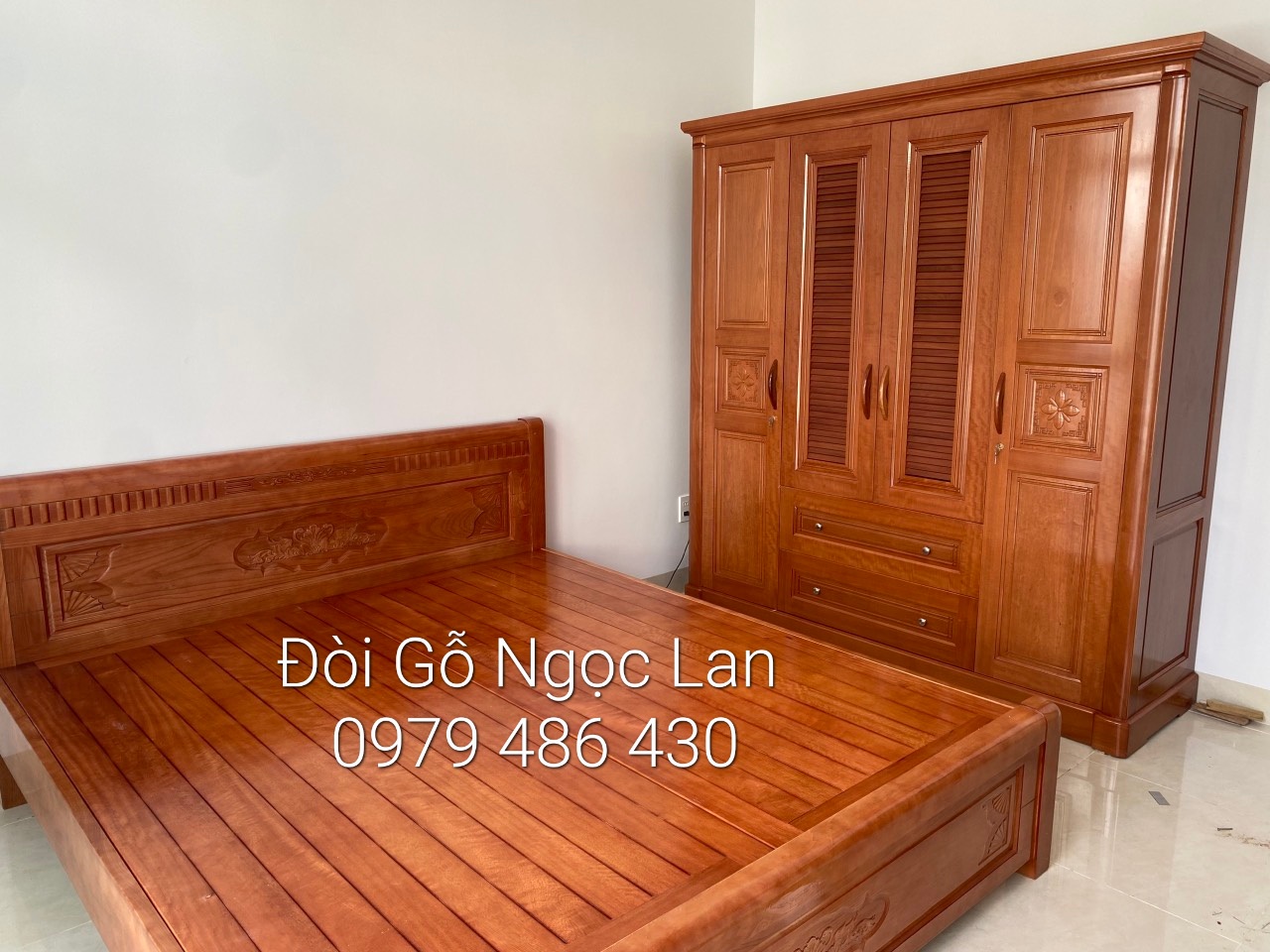- Giường gỗ xoan đào mẫu cổ hoa 1m8x2m - phản nan