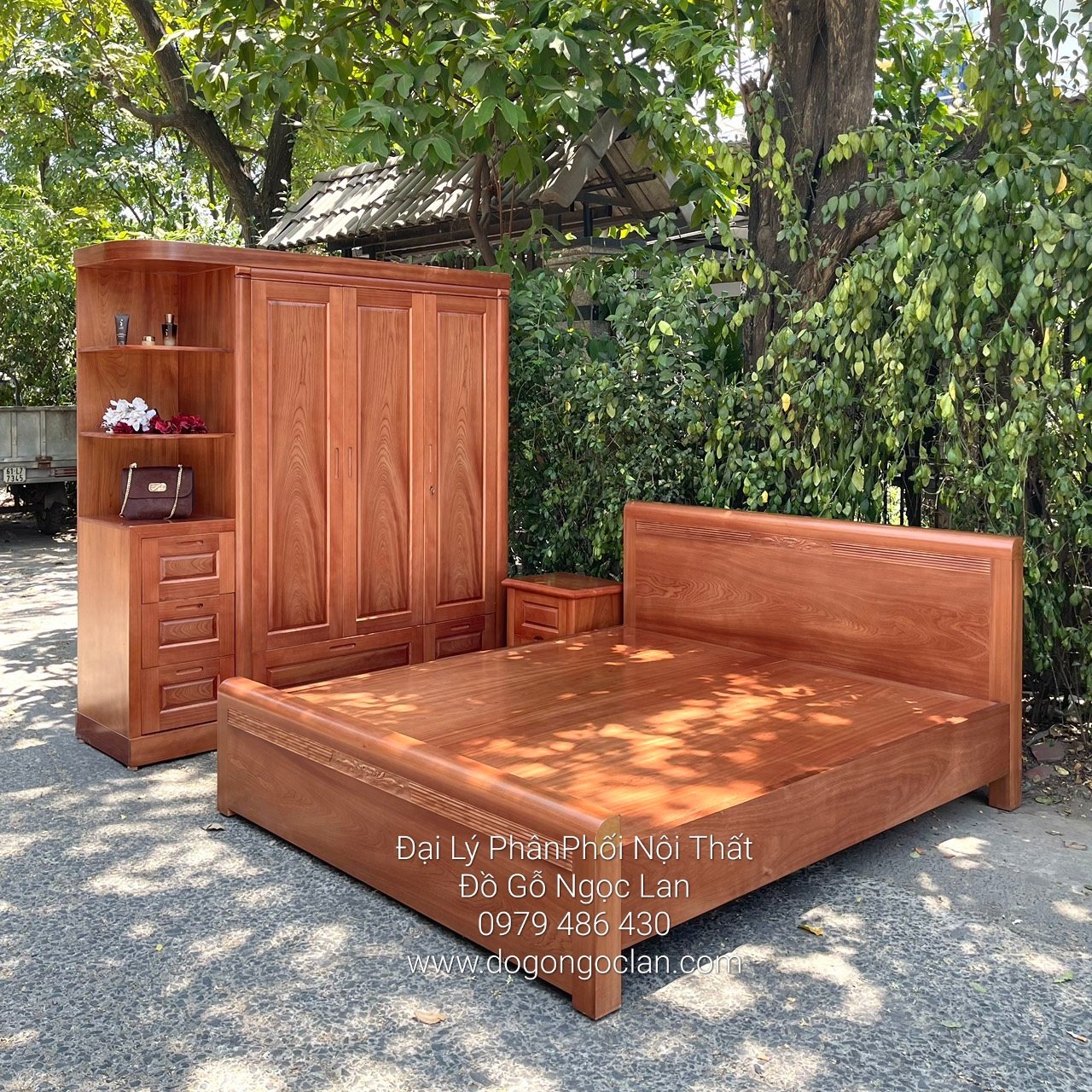 - Giường gỗ xoan đào mẫu chỉ hoa 1m8x2m - phản liền
