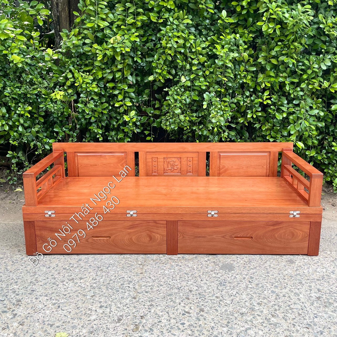 giường gấp 2 ngăn kéo gỗ xoan đào bản nề âm