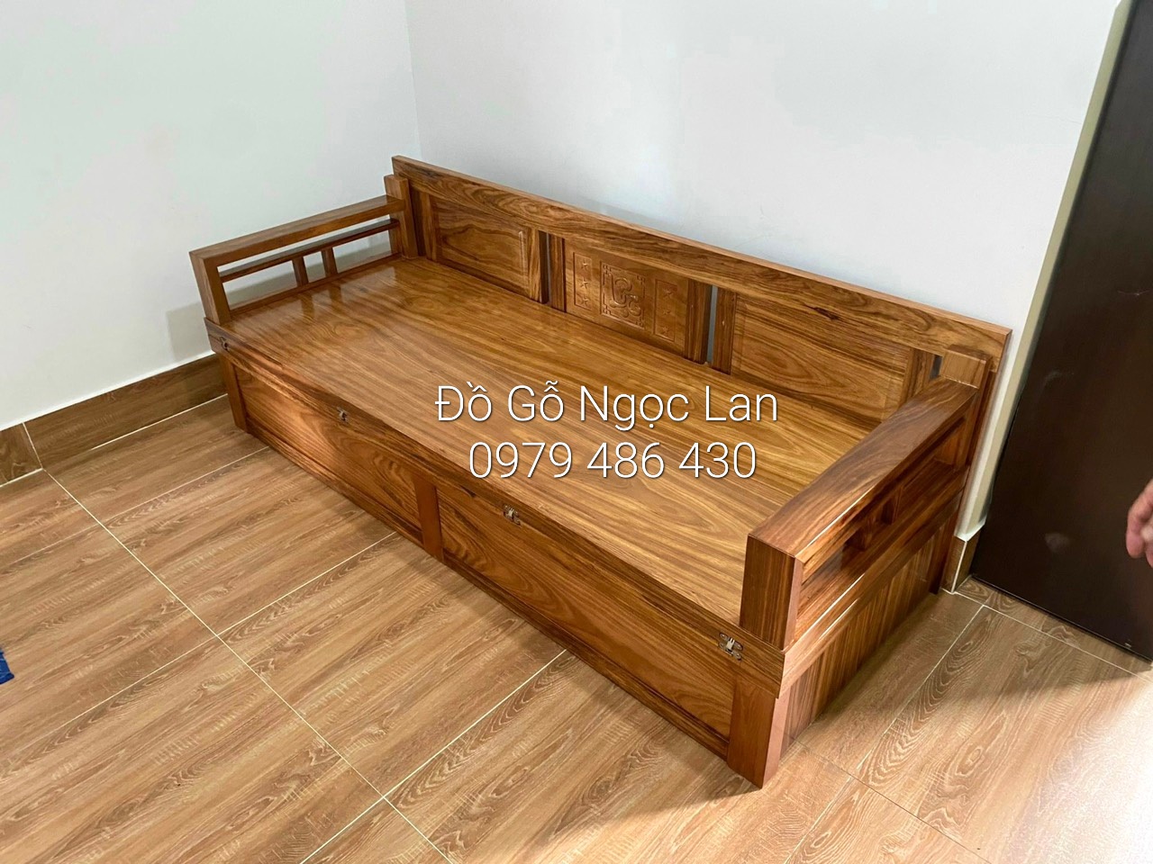 Ghế Gấp Thành Giường 2 Ngăn Kéo Gỗ Xoan Đào Kèm Bàn Trà Mặt Đá - Hiện Đại