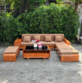 Sofa gỗ sồi nga kèm nệm cao cấp hiện đại
