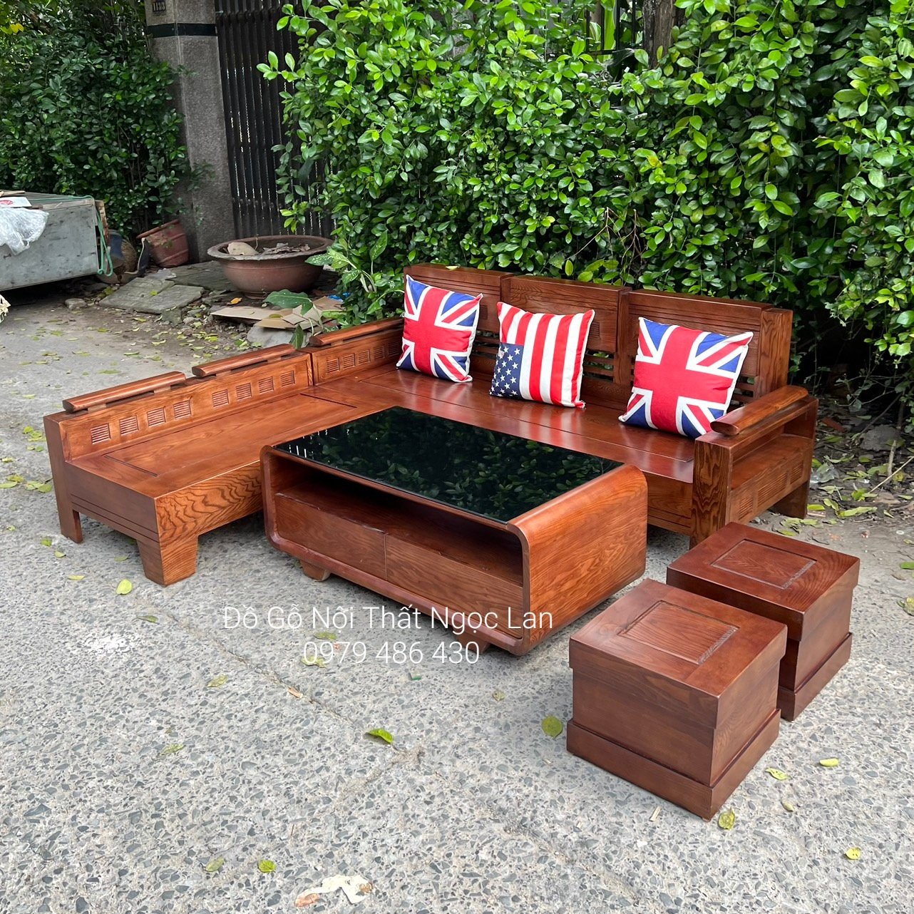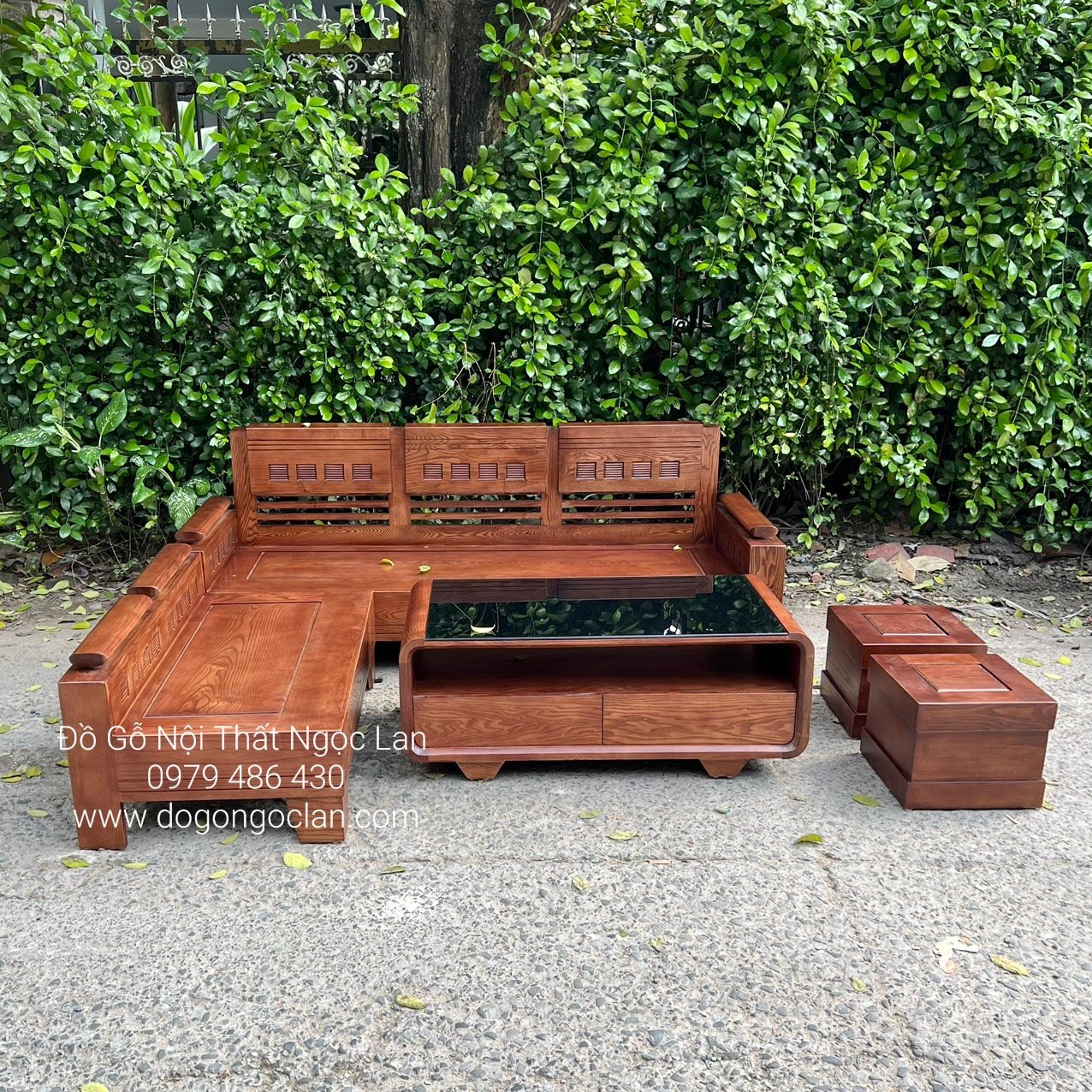 Mẫu ghế sofa góc L gỗ sồi nag màu óc chó hiện đại tại huyện đan phượng - TP Hà Nội