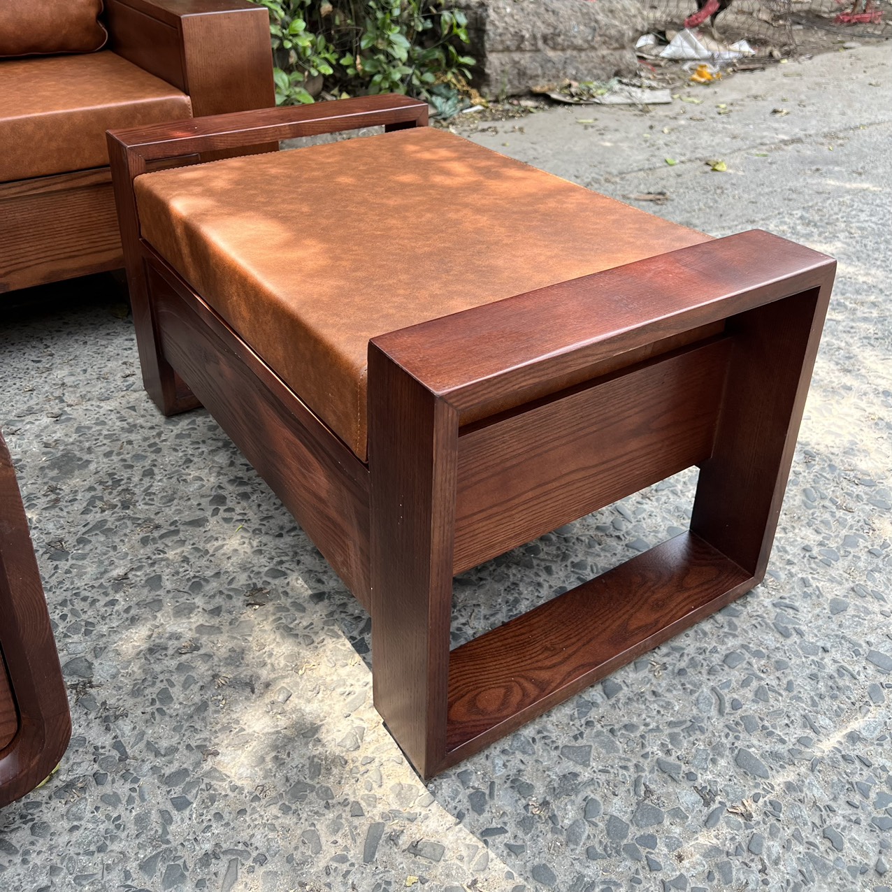 Chi tiết bộ ghế sofa gỗ sồi nga 1 văng màu óc chó