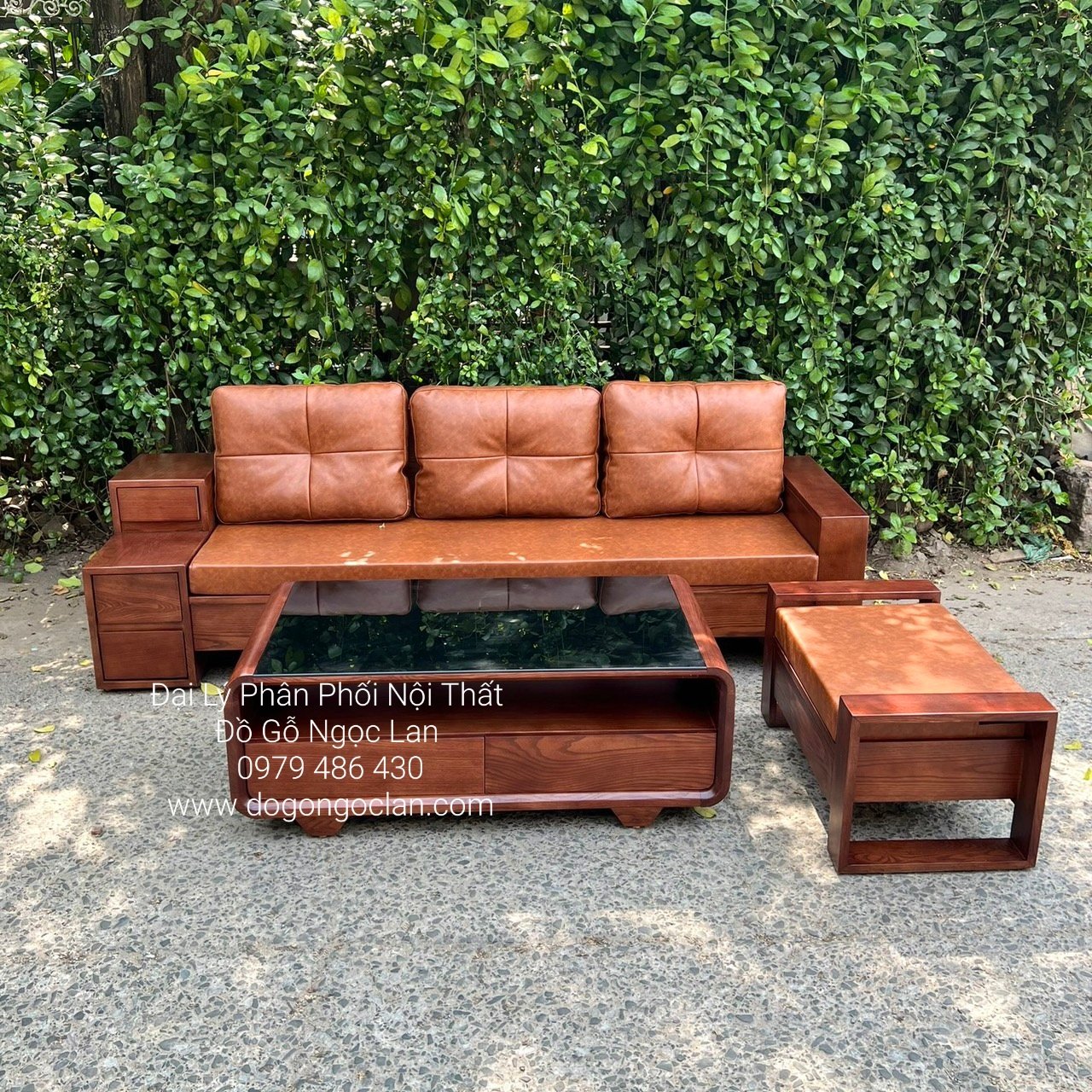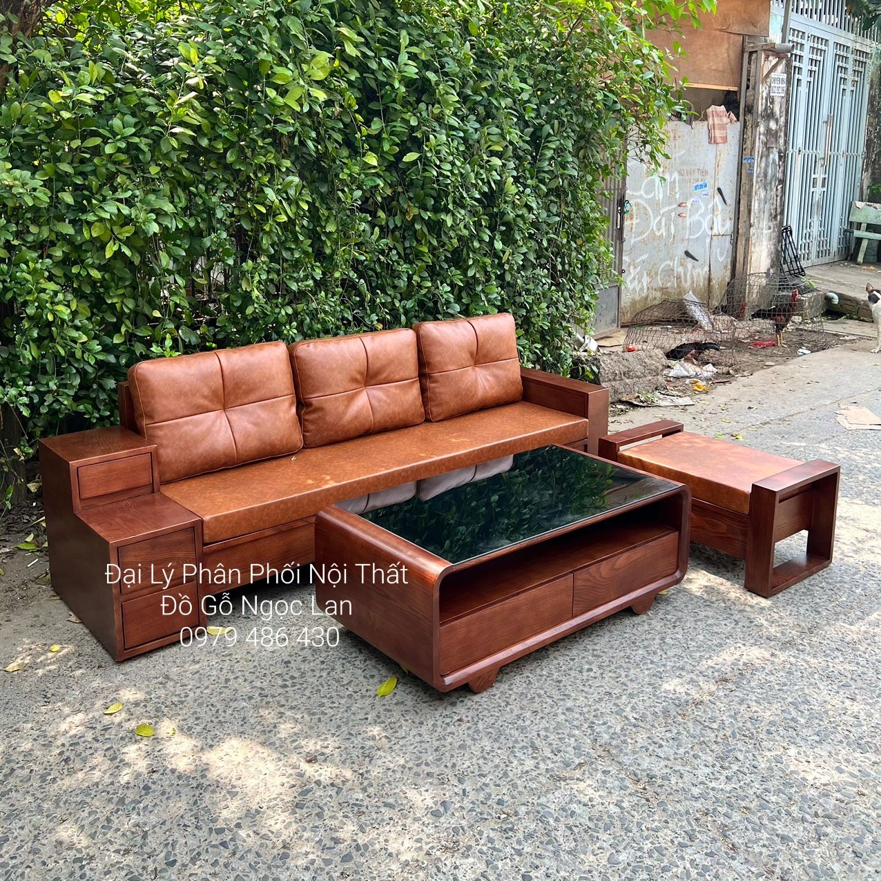 Bộ Bàn Ghế Sofa Gỗ Sồi Nga Màu Óc Chó - Bàn Bom Tay Trứng Hiện Đại 2mx1m8