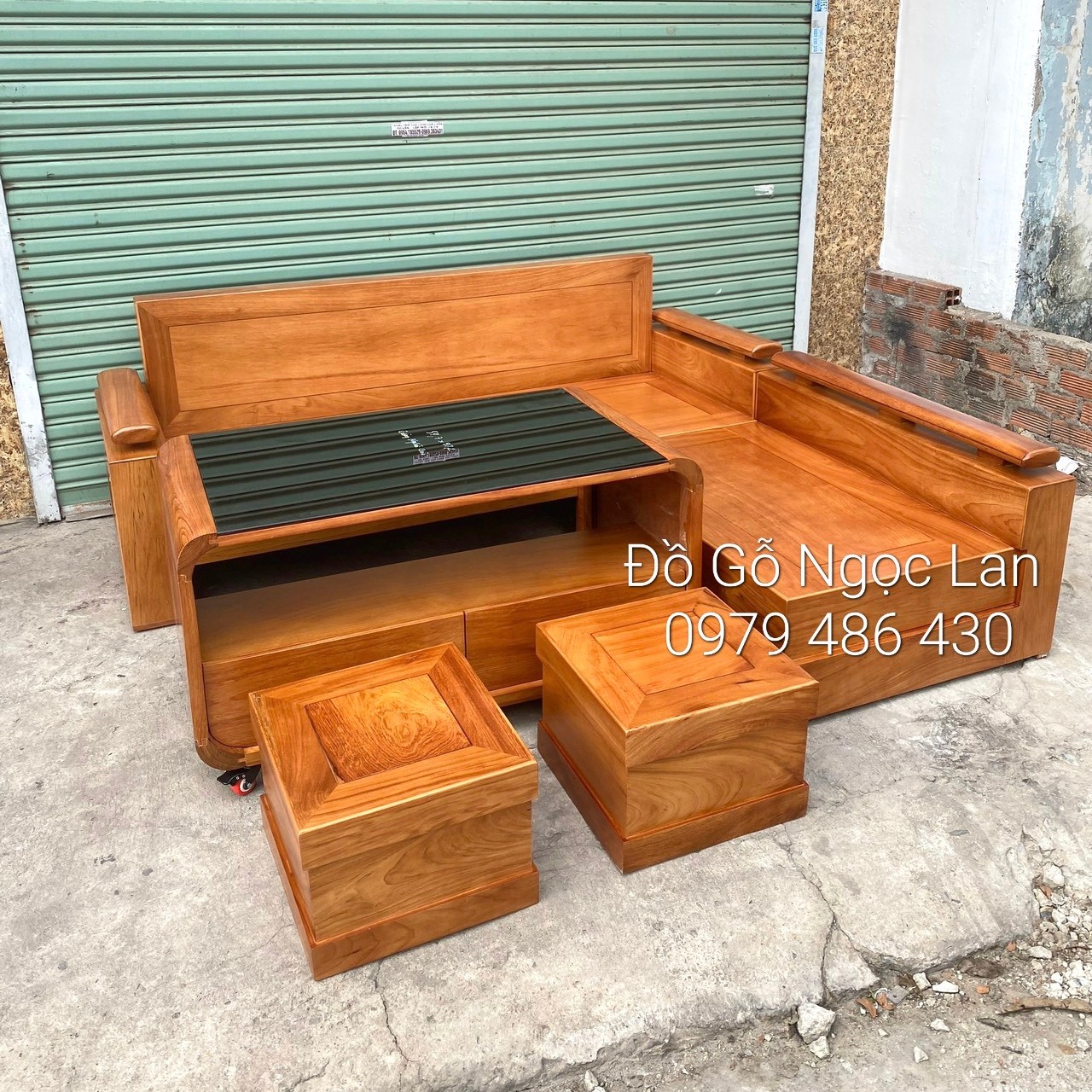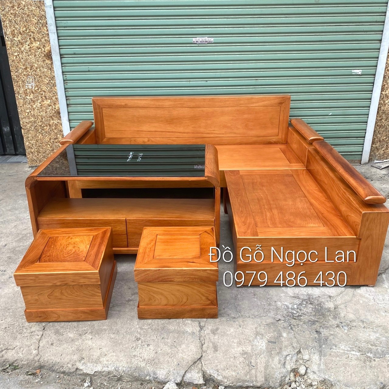 Ghế sofa Góc L Gỗ Sồi Nga Lau Màu Gõ Đỏ 2m x 1m8 - Bàn Hiện Đại