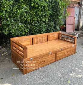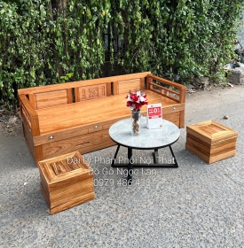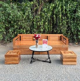 Giường ghế gấp gỗ hương xám 2 ngăn kéo + bàn trà 4 món