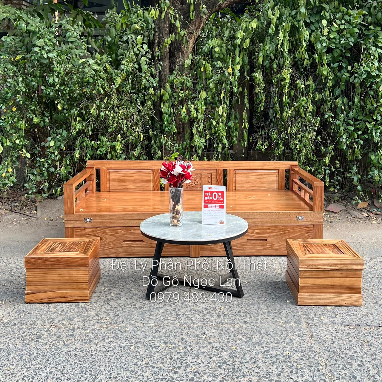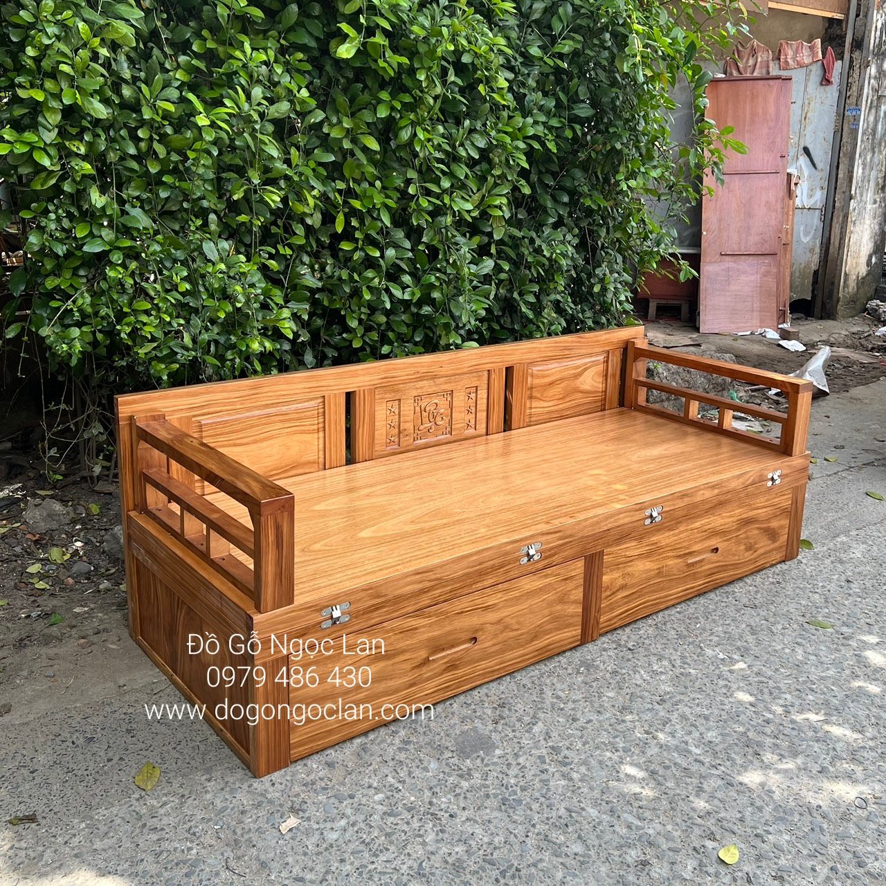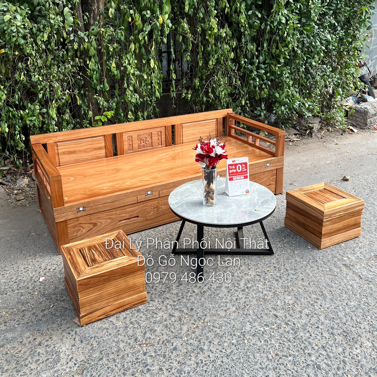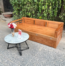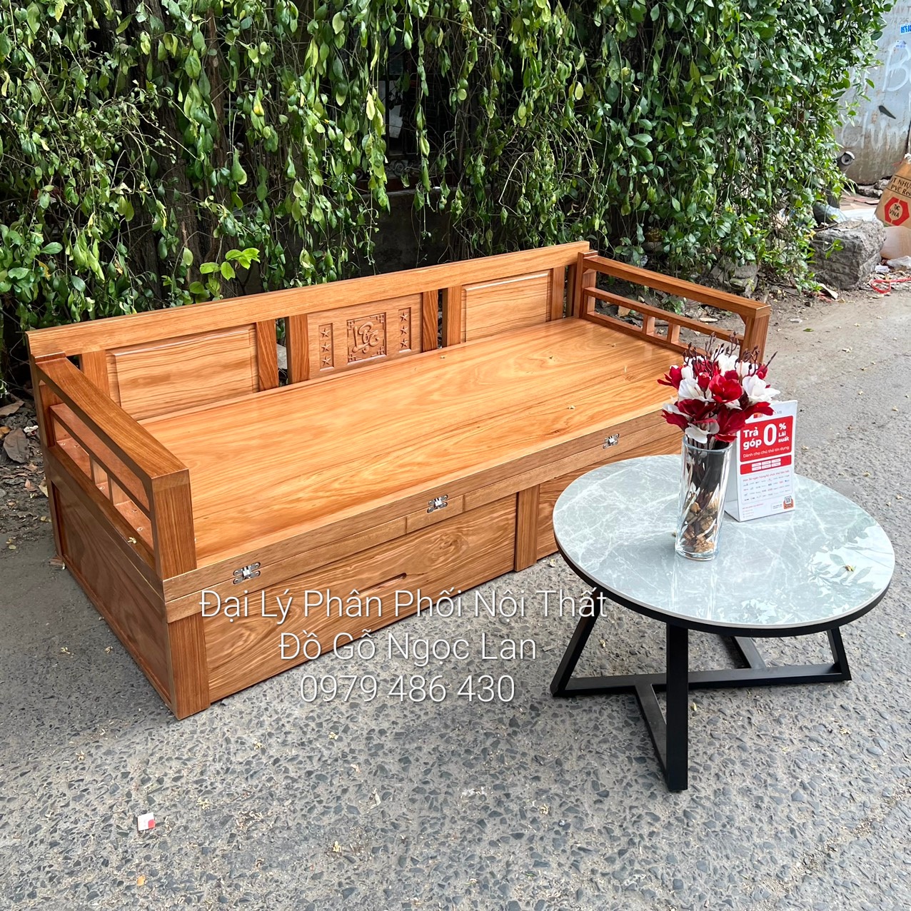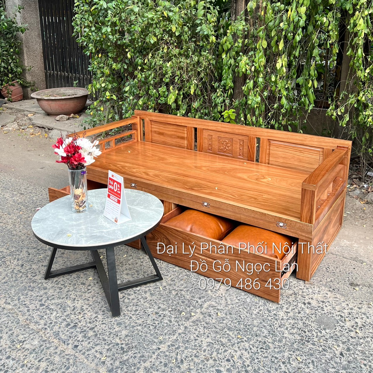 Ghế Gấp Thành Giường 2 Ngăn Kéo Gỗ Xoan Đào Kèm Bàn Trà Mặt Đá - Hiện Đại