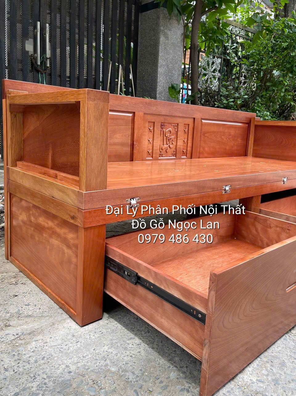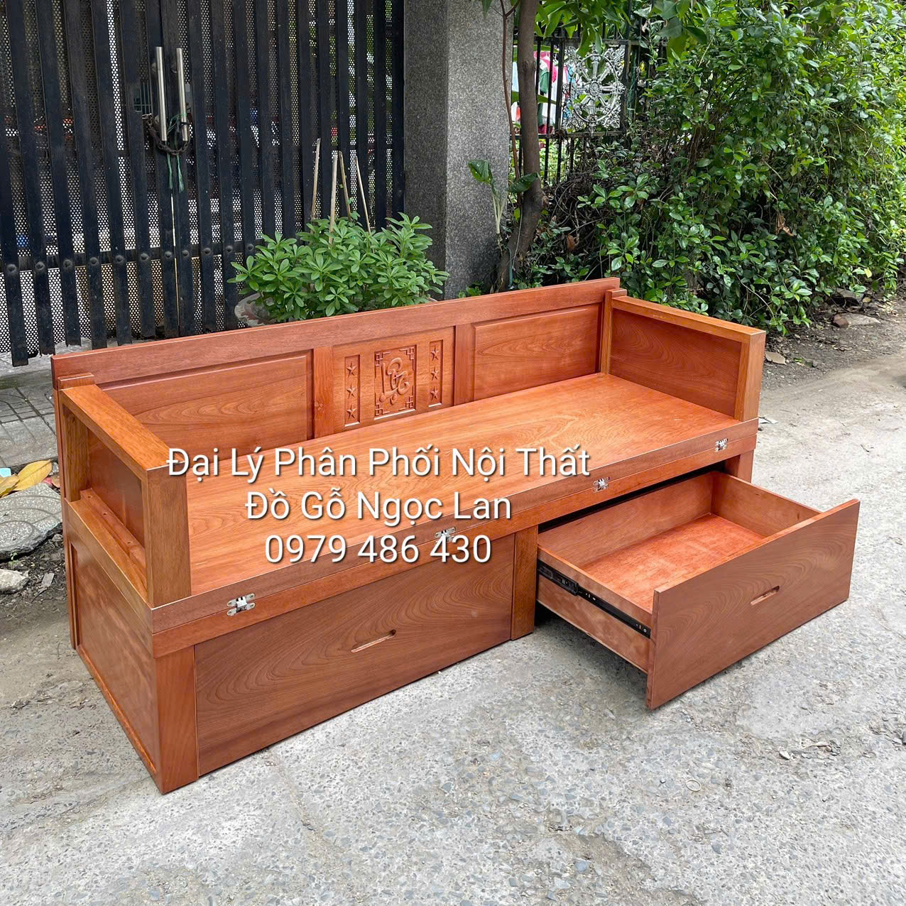 Ghế Gấp Thành Giường 2 Ngăn Kéo Gỗ Xoan Đào Kèm Bàn Trà Mặt Đá - Hiện Đại