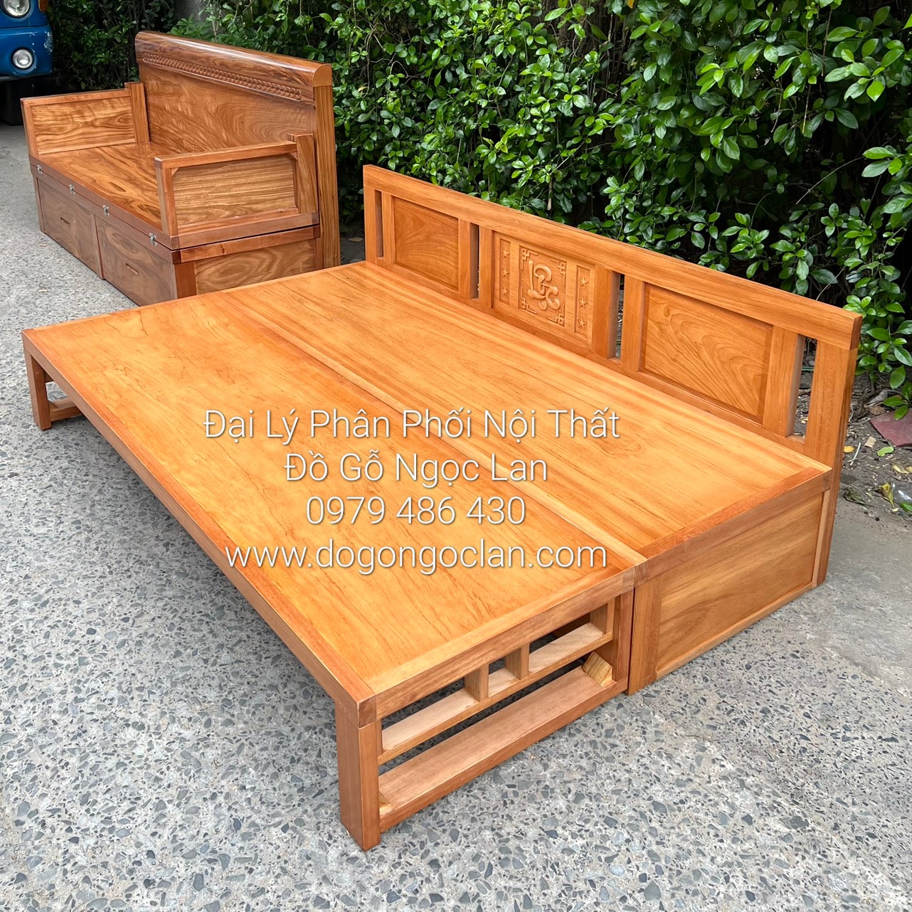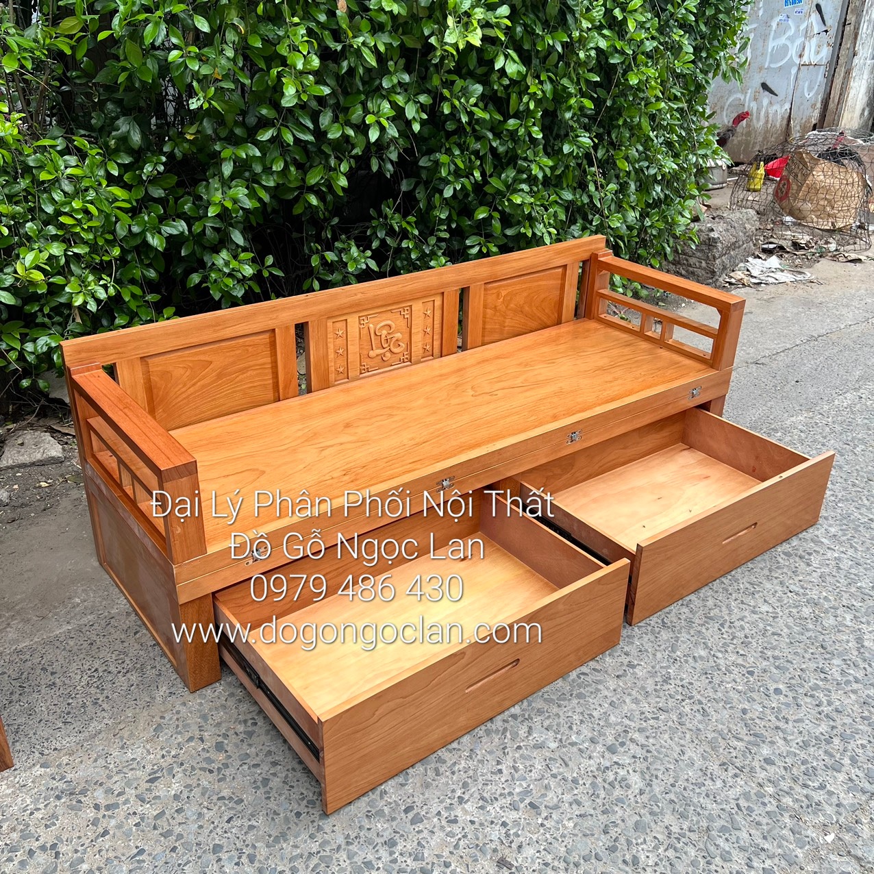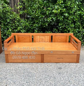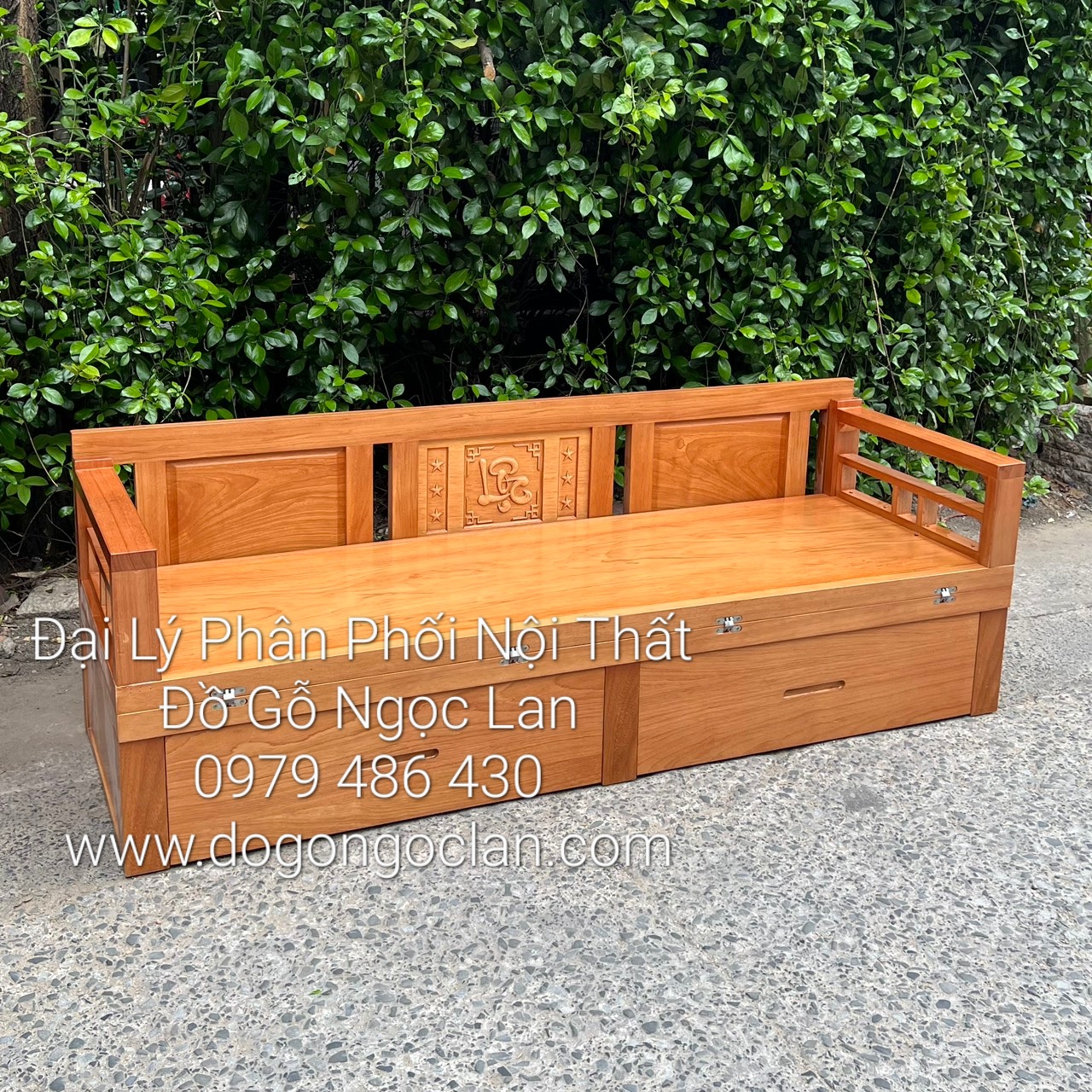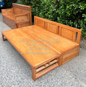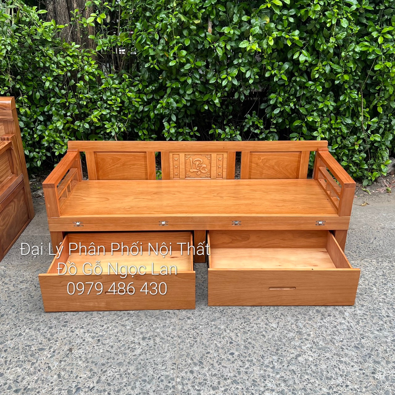 Ghế Gấp Thành Giường 2 Ngăn Kéo Gỗ Xoan Đào Kèm Bàn Trà Mặt Đá - Hiện Đại
