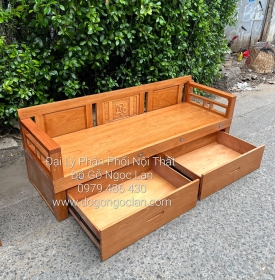 Ghế giường gấp thông minh gỗ gõ đỏ 2 ngăn kéo