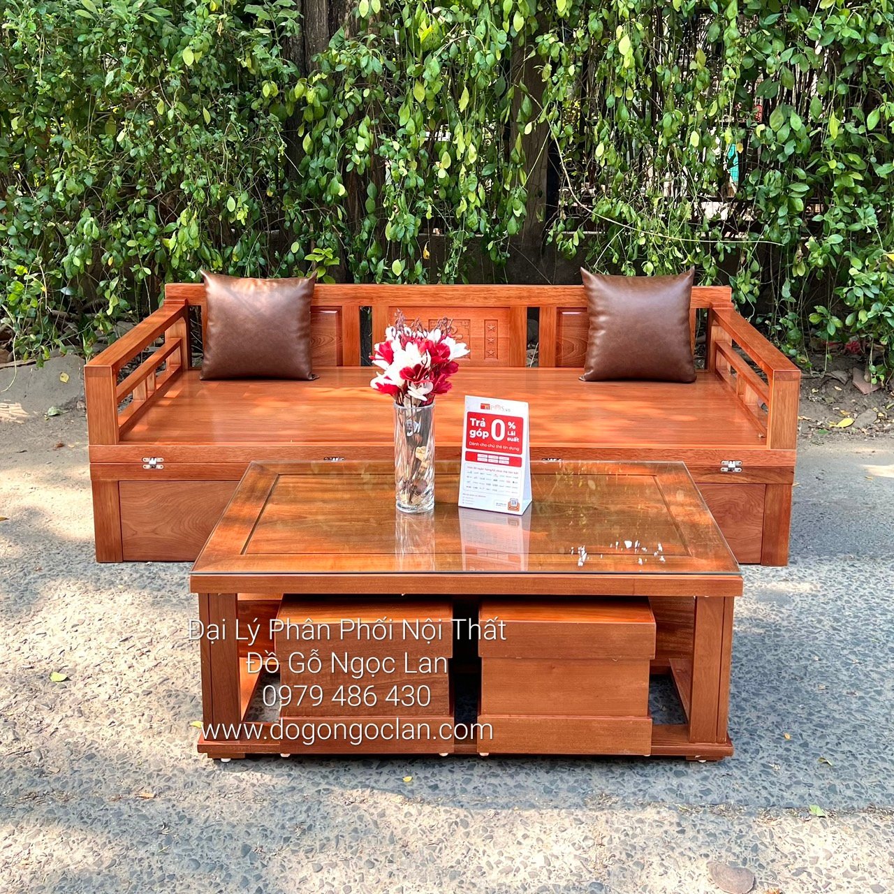 Ghế Gấp Thành Giường 2 Ngăn Kéo Gỗ Xoan Đào Kèm Bàn Trà Mặt Đá - Hiện Đại