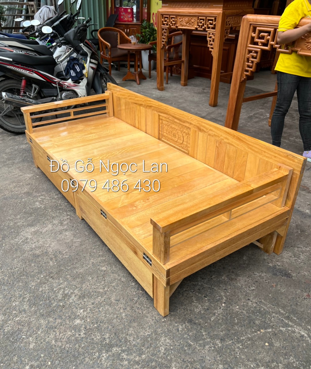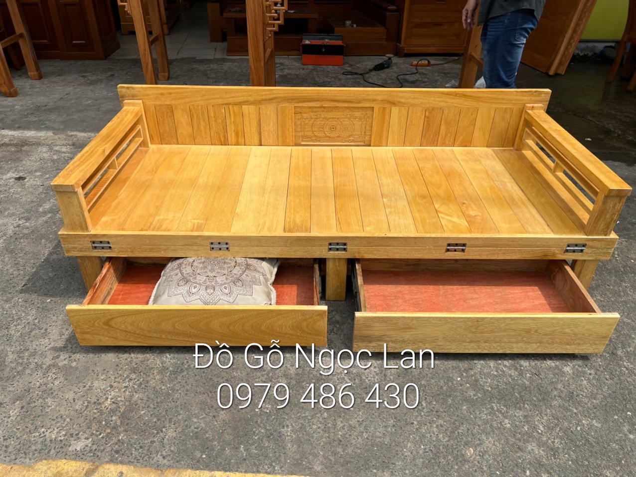 Ghế Gấp Thành Giường 2 Ngăn Kéo Gỗ Xoan Đào Kèm Bàn Trà Mặt Đá - Hiện Đại
