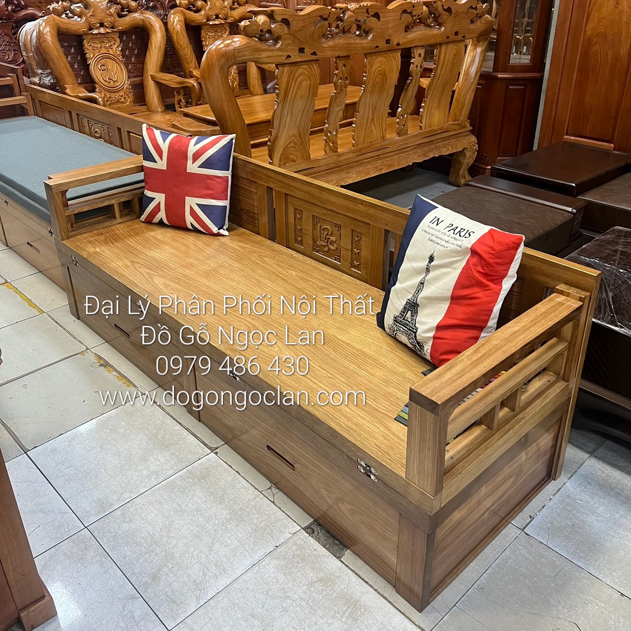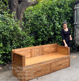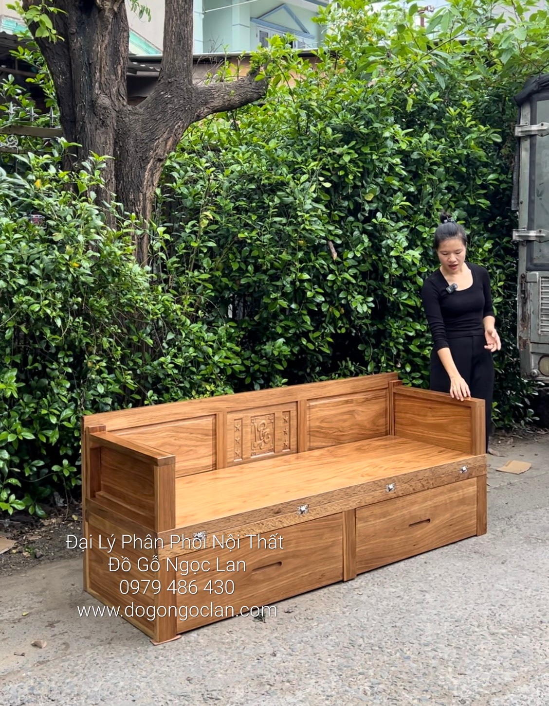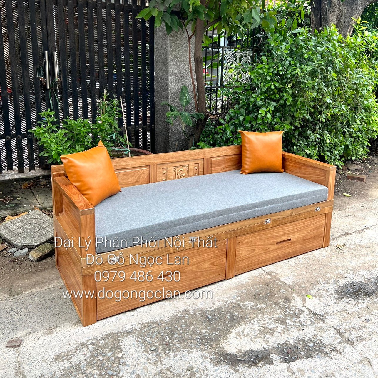 Ghế Gấp Thành Giường 2 Ngăn Kéo Gỗ Xoan Đào Kèm Bàn Trà Mặt Đá - Hiện Đại