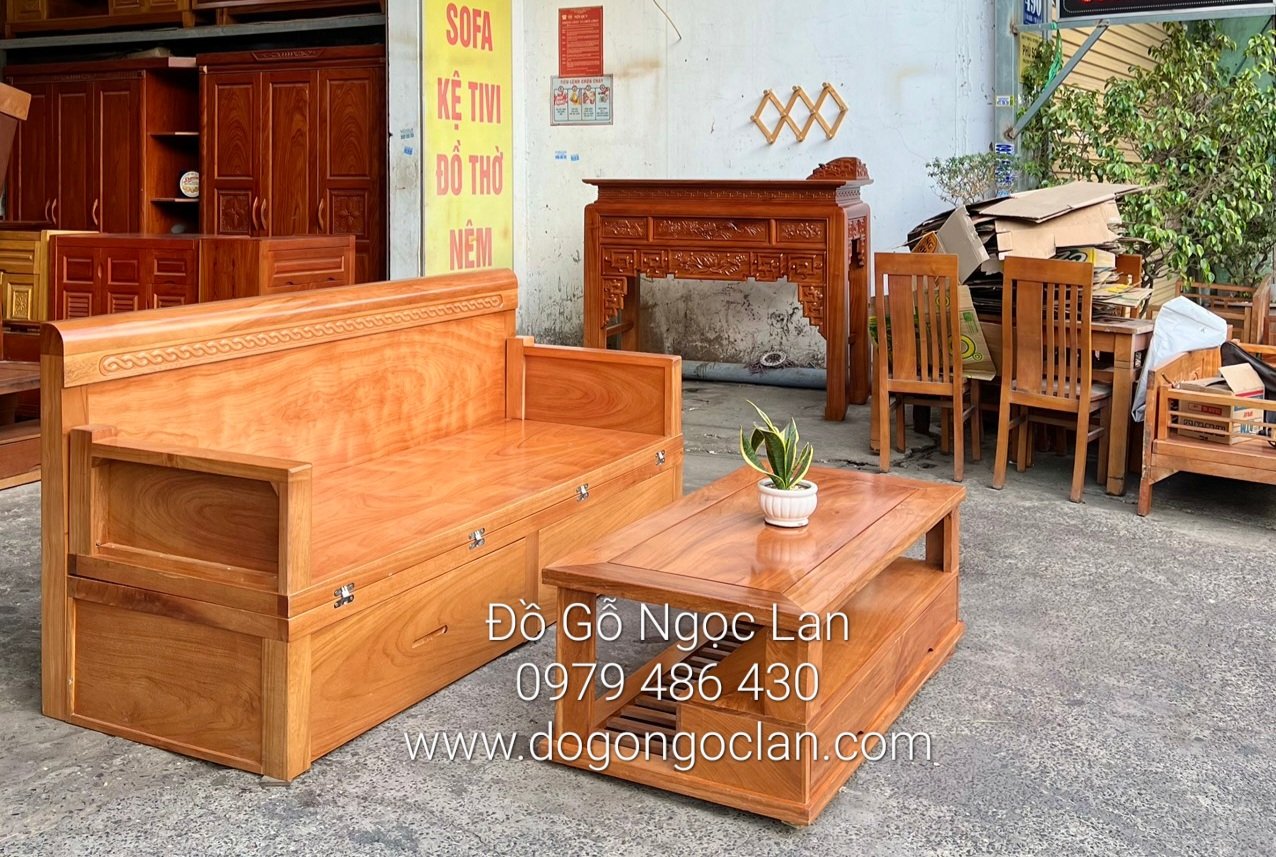 Kích Thước Ghế Sofa Gấp Thành Giường Gỗ Gõ Đỏ 2 Ngăn Kéo