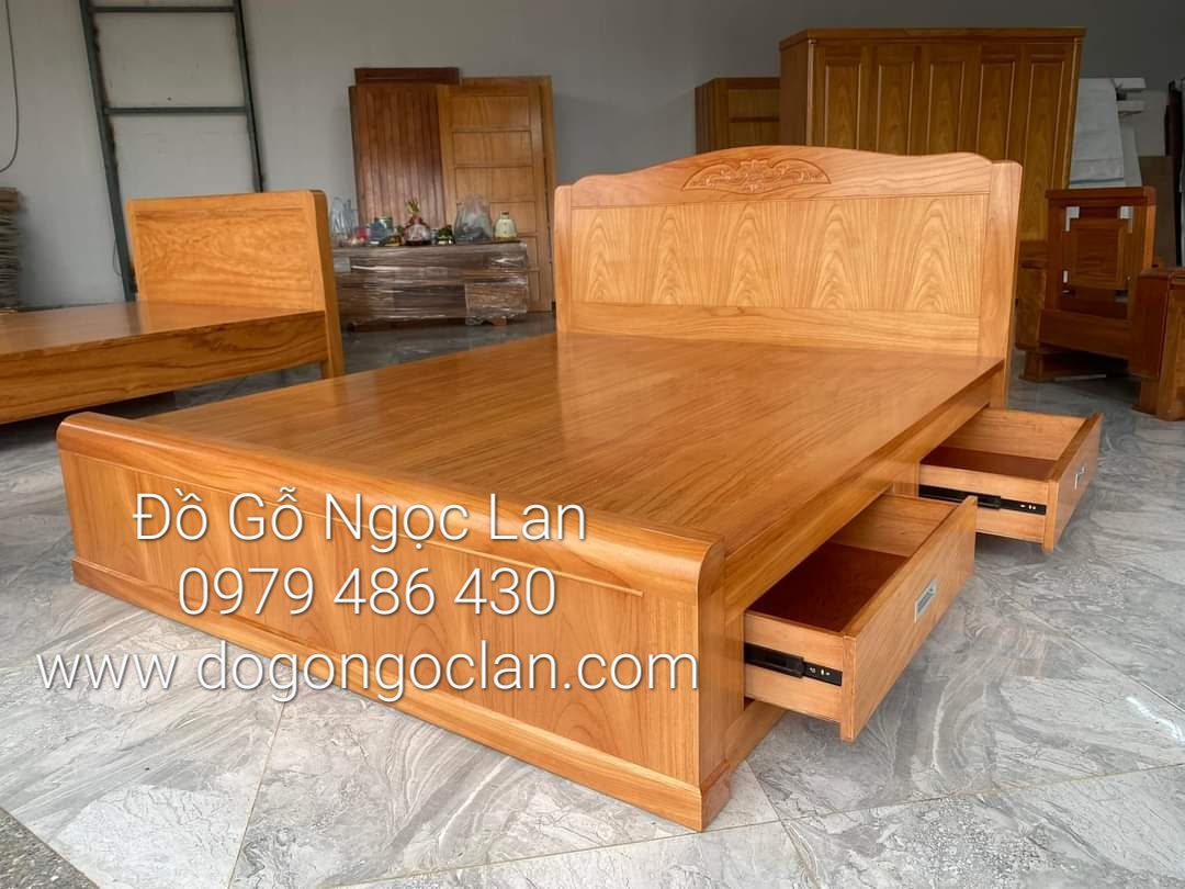 Giường gỗ Gõ đỏ 2 ngăn kéo - Phản liền