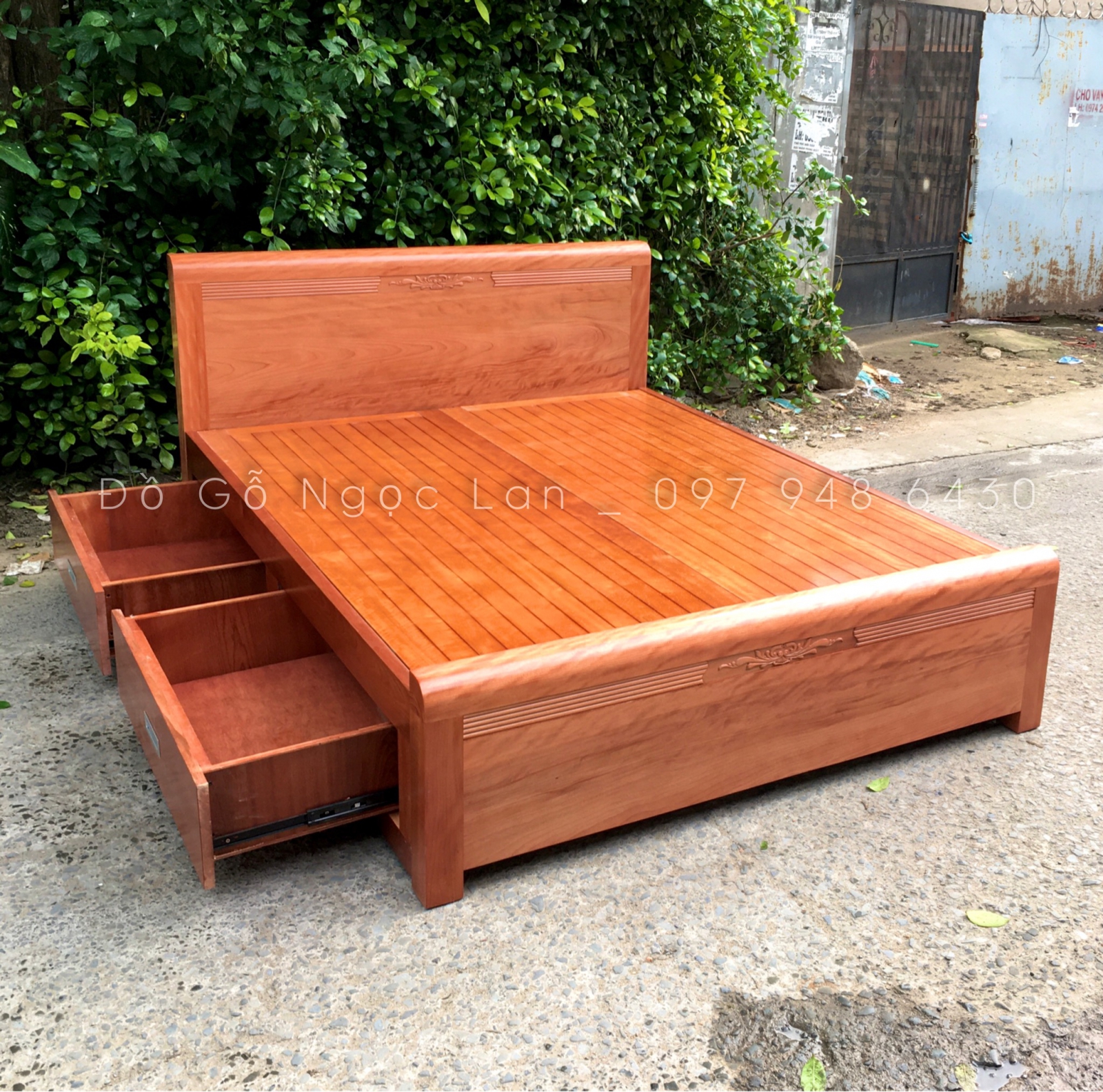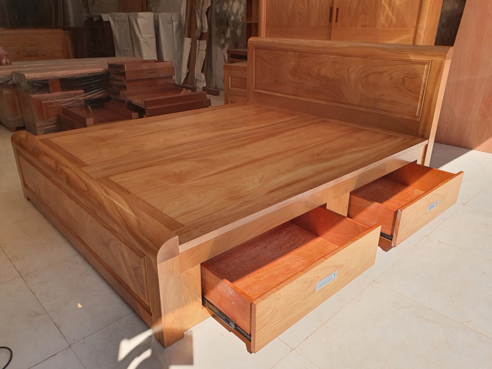 Giường gỗ Gõ đỏ 2 ngăn kéo - Phản liền