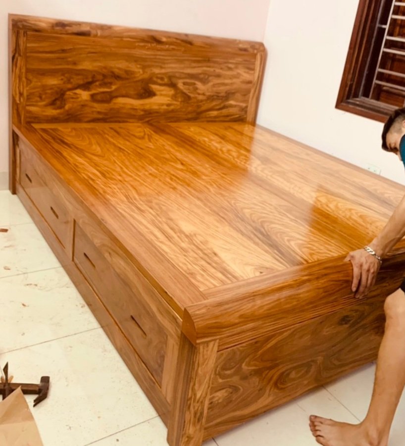 Giường gỗ hương xám 2 ngăn kéo hiện đại